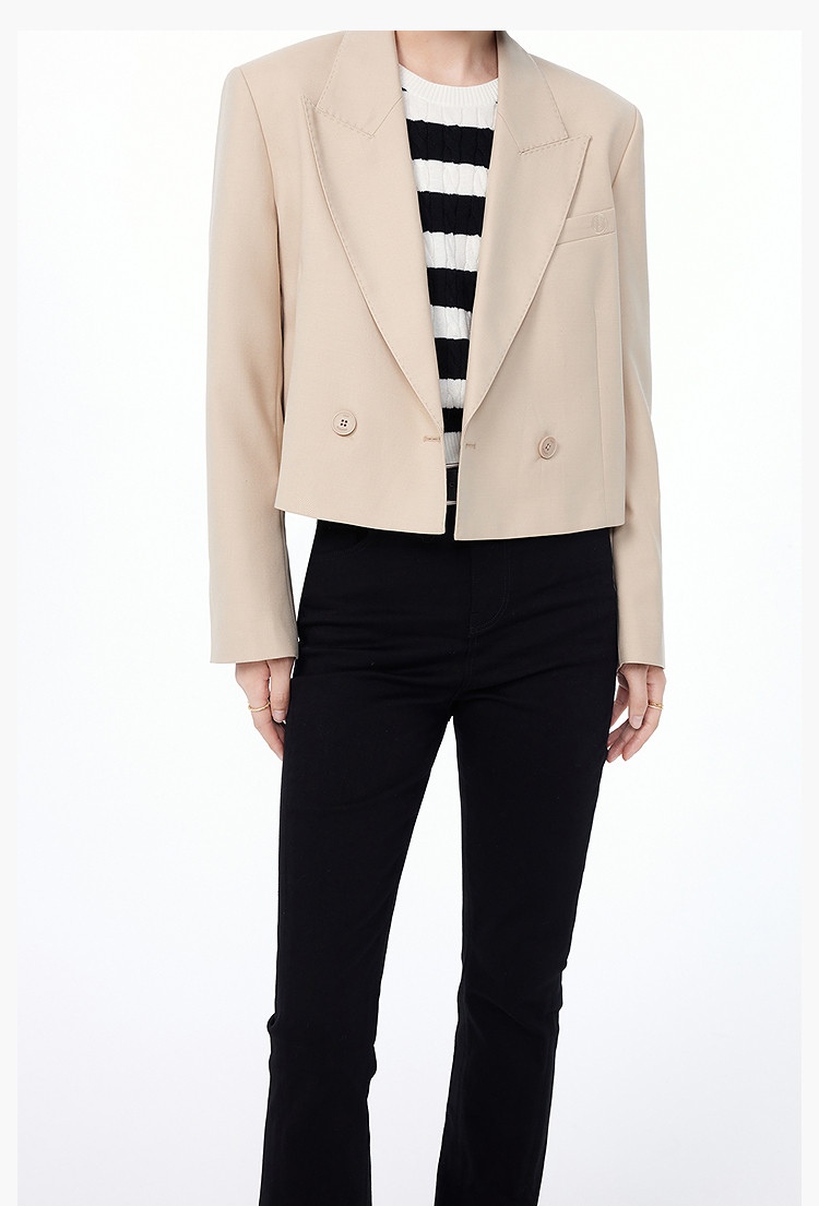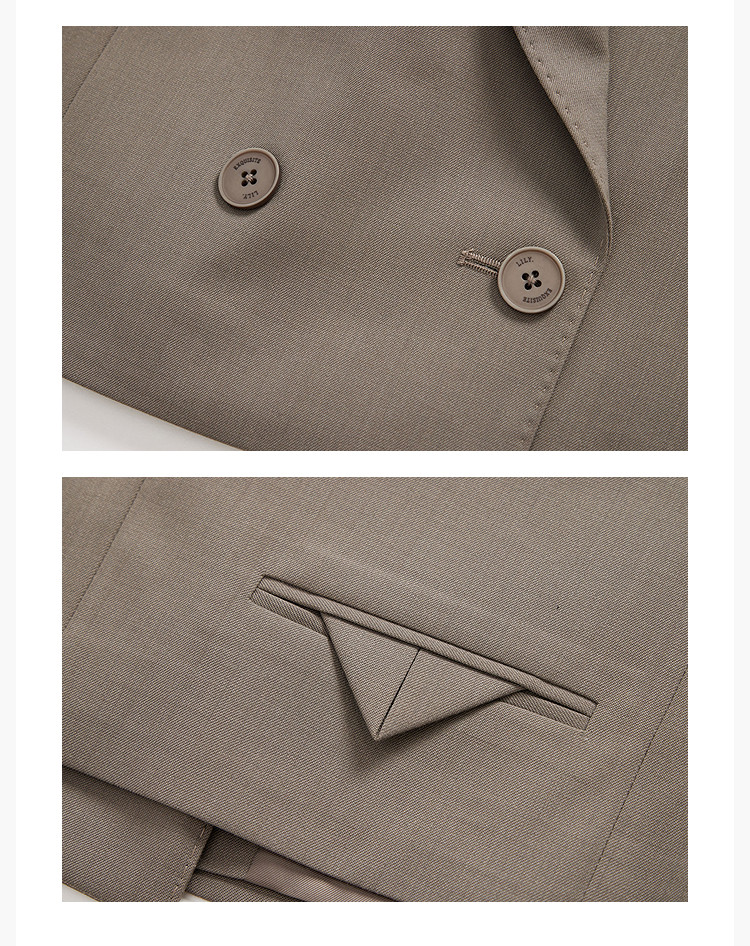 商品名称:【绵羊毛】西服外套女春季都市通勤时尚双排扣百搭西装外套 816475