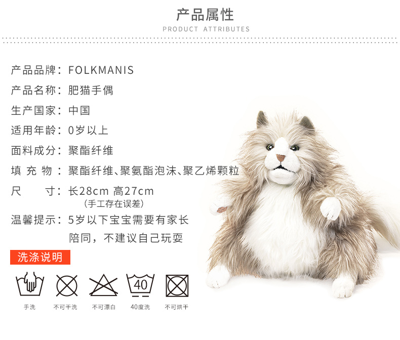 商品名称:福克曼尼斯/FOLKMANIS 仿真互动教育肥猫手偶
