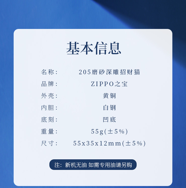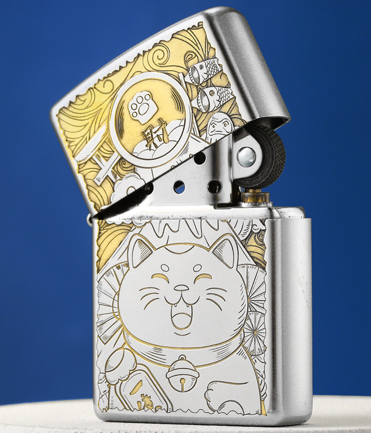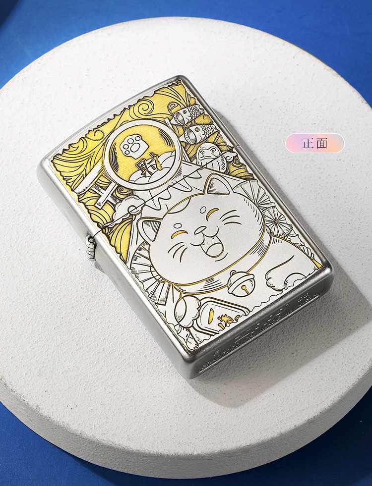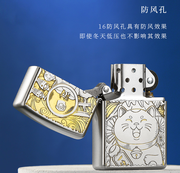 商品名称:【福运系列】打火机正版召财猫磨砂深雕打火机煤油防风男士礼物 071198