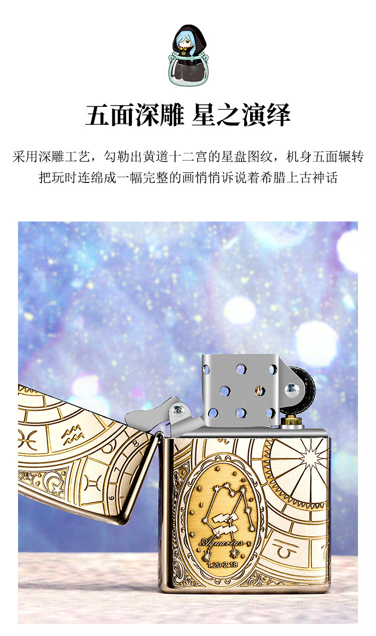 商品名称:【热销爆款】打火机深雕古银五面十二星座煤油正版高级感男士礼物 678942