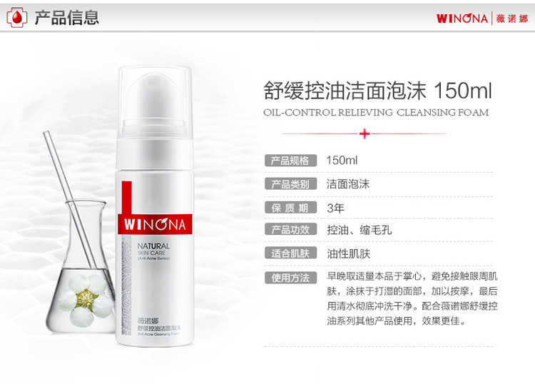 商品名称:Winqan/薇诺娜 舒缓控油洁面泡沫 150ml 补水洗面奶男女温和清洁不紧绷