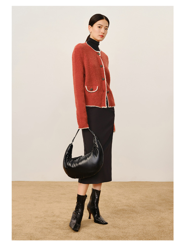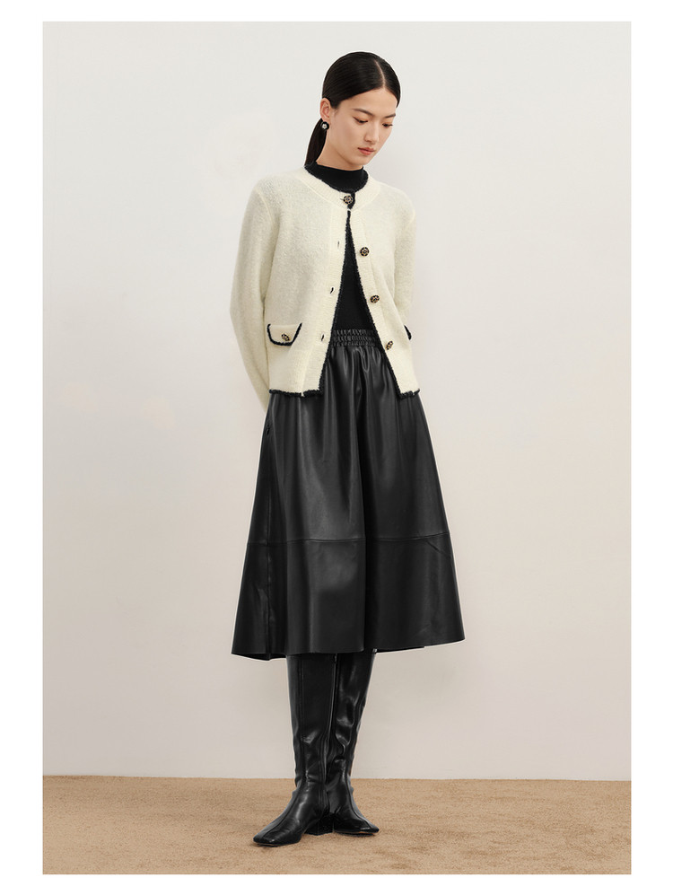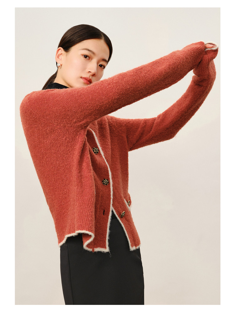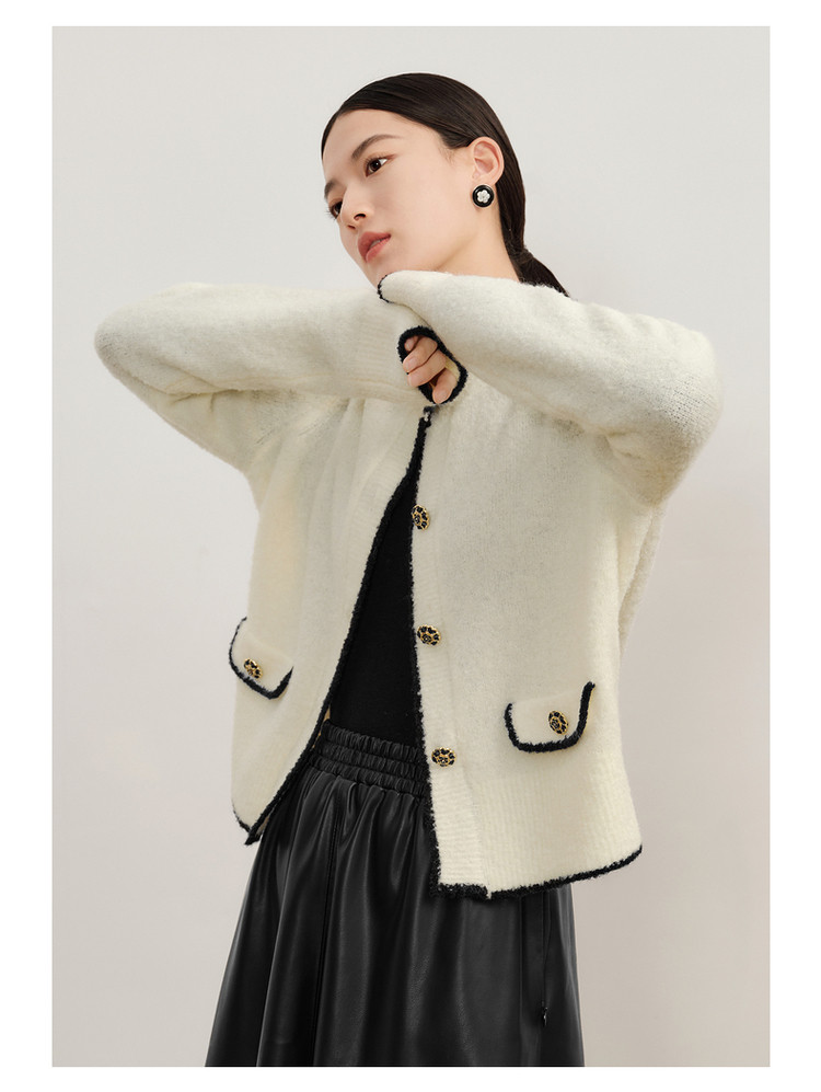 玖姿旗下安娜蔻系列优雅小香风圈圈纱长袖针织开衫女冬季 621964