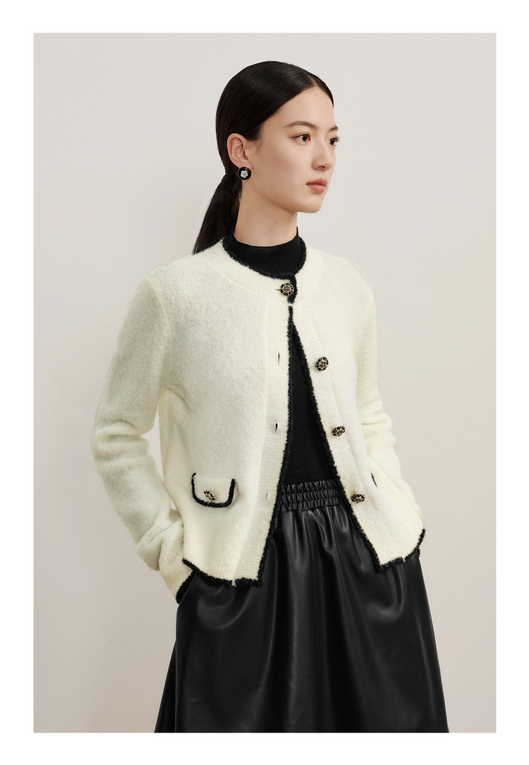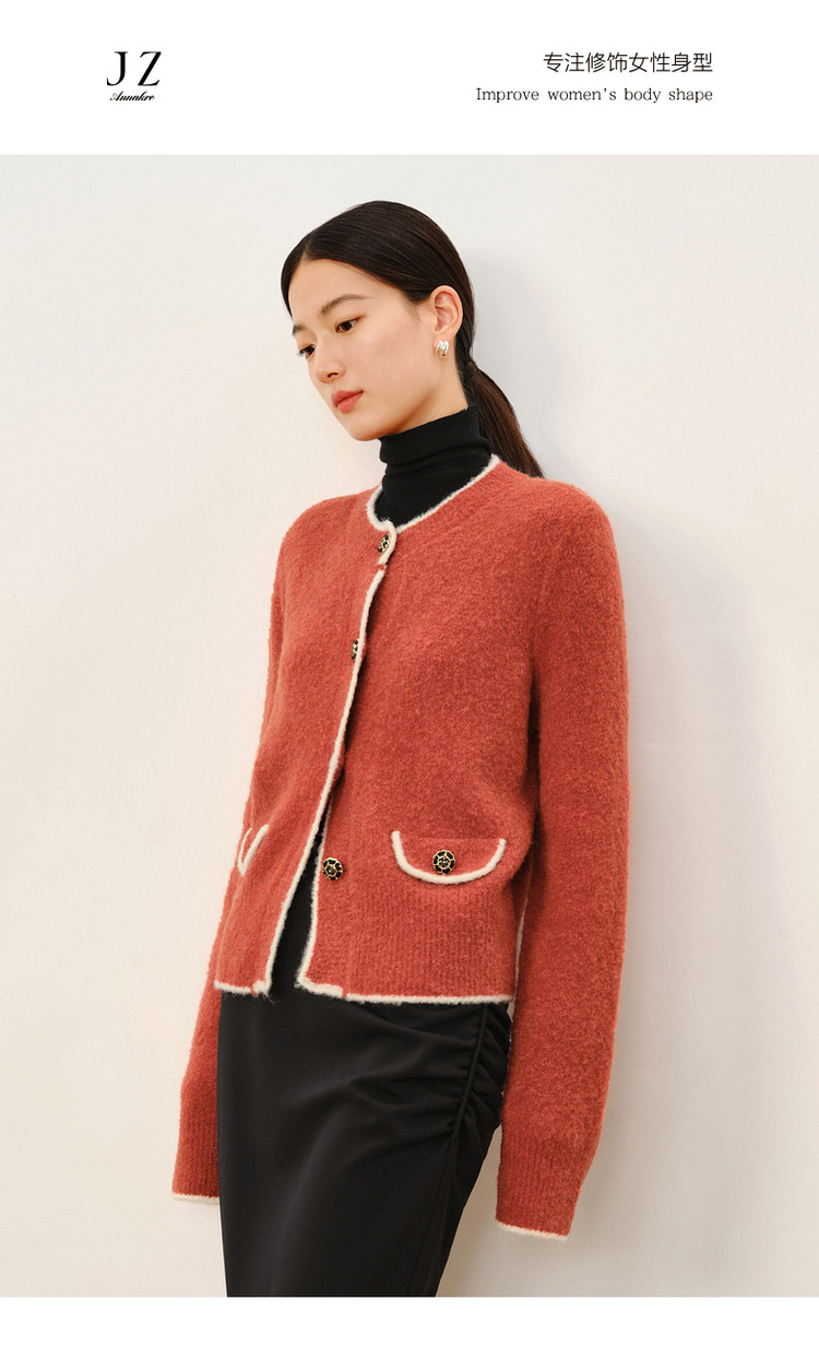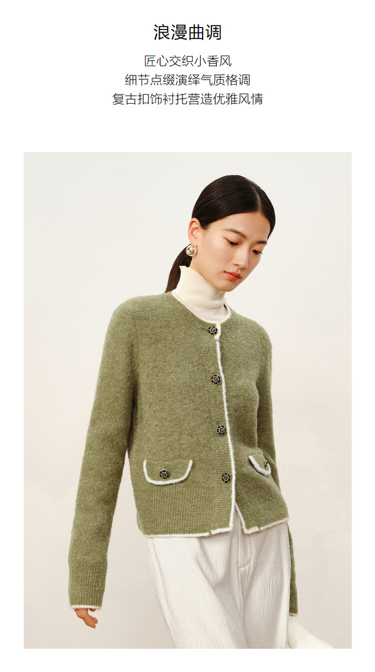 商品名称:玖姿旗下安娜蔻系列优雅小香风圈圈纱长袖针织开衫女冬季 621964