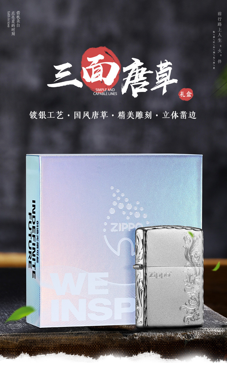 打火机镀银侧雕唐草繁花正版煤油防风高级感男士礼物送礼 830558