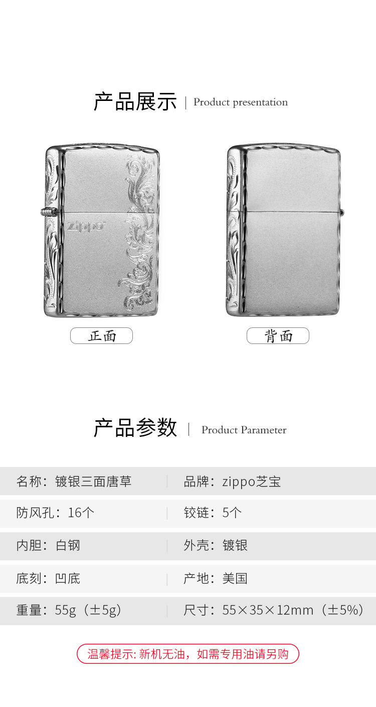 商品名称:打火机镀银侧雕唐草繁花正版煤油防风高级感男士礼物送礼 830558