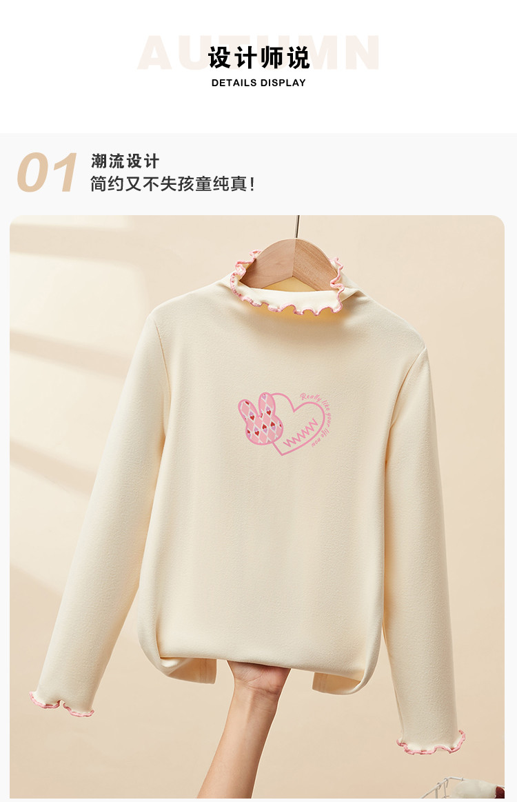 女童长袖春秋款时尚洋气女孩薄绒长袖打底衫中大童半高领儿童上衣 134607