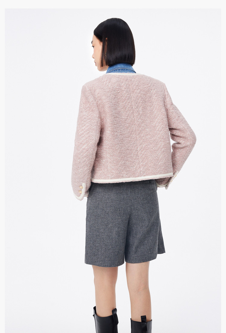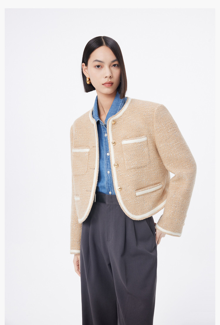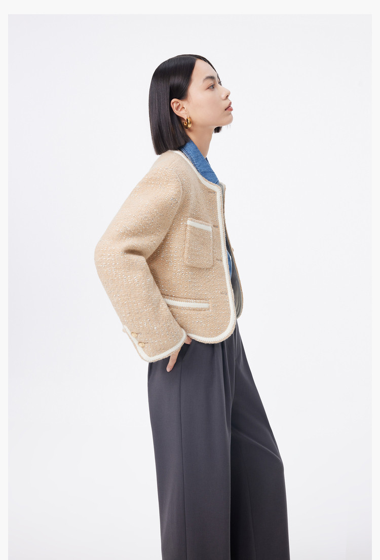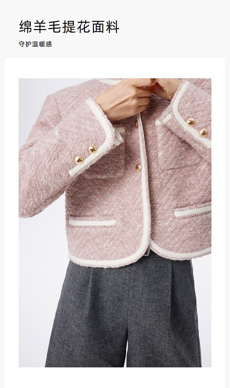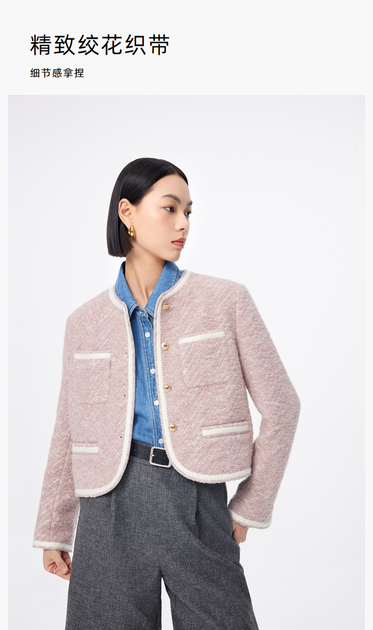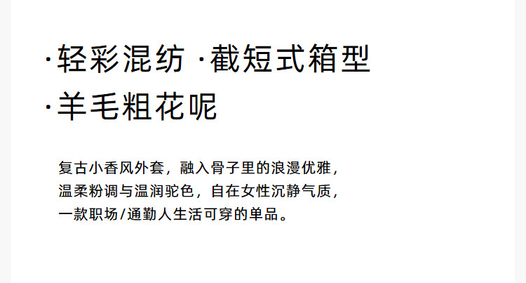 商品名称:春季复古气质小香风绵羊毛时尚通勤款短外套小个子 537883