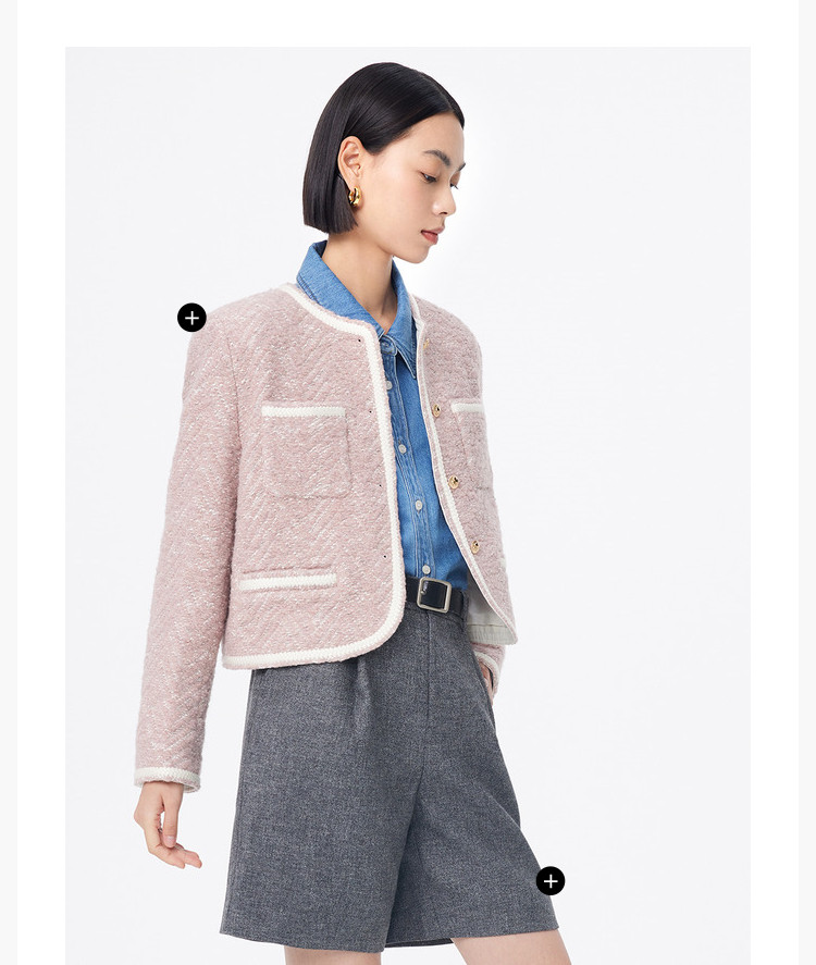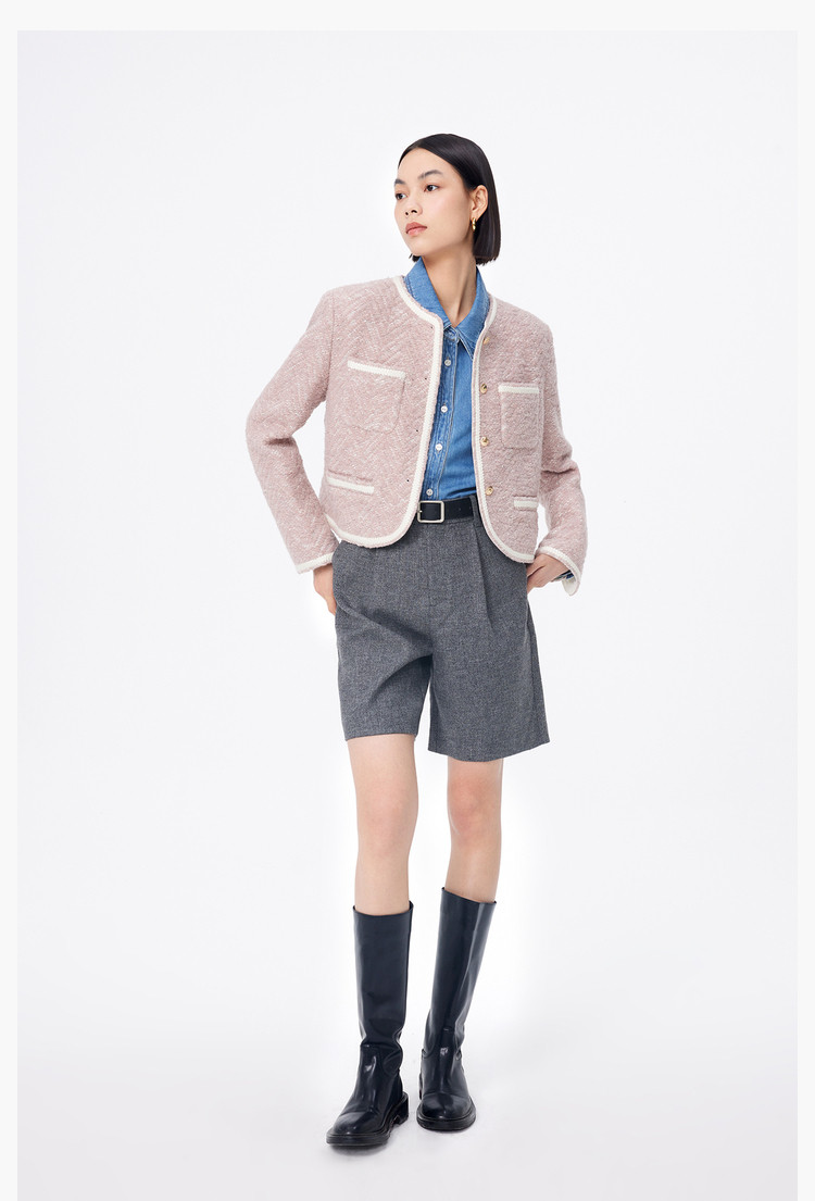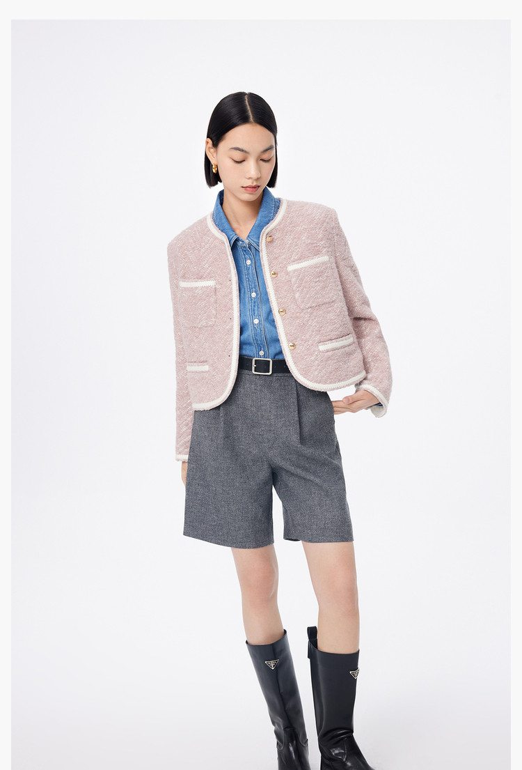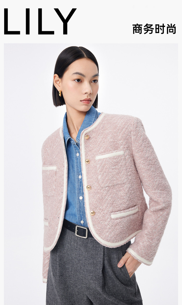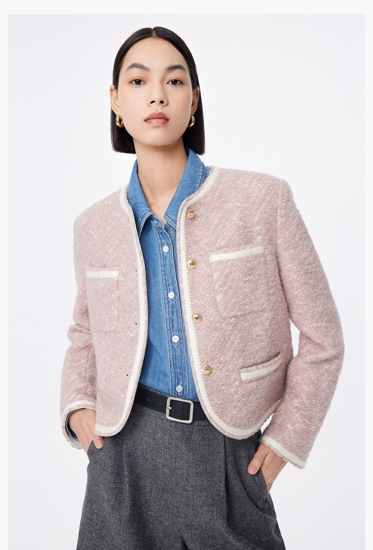 商品名称:春季复古气质小香风绵羊毛时尚通勤款短外套小个子 537883