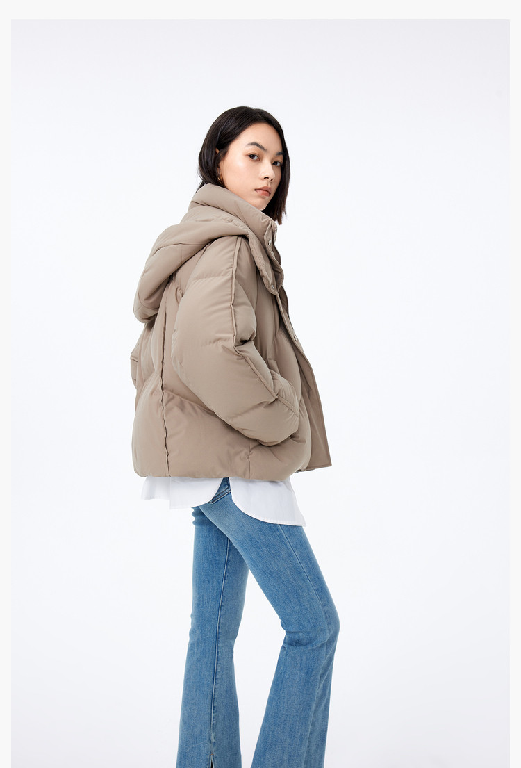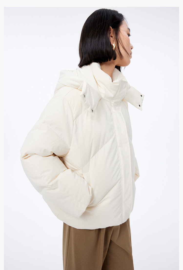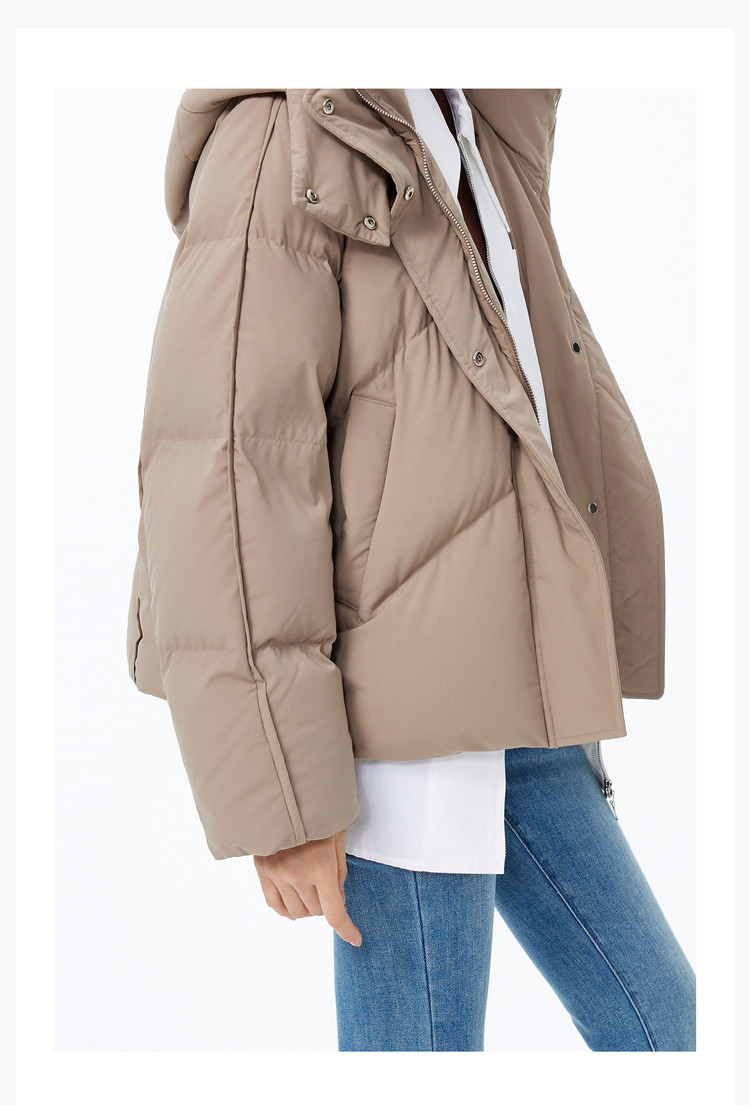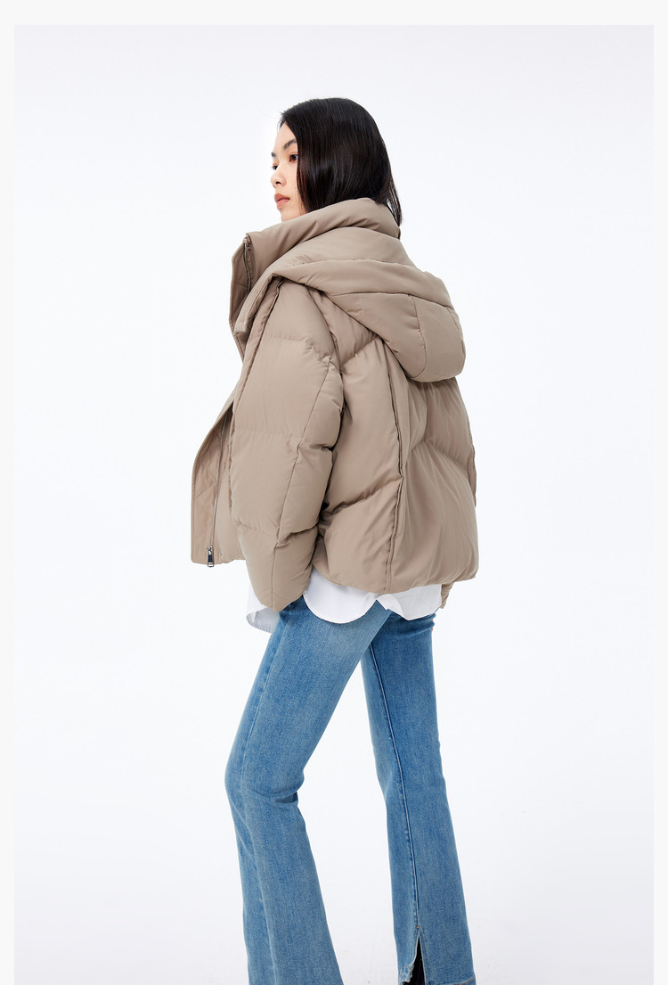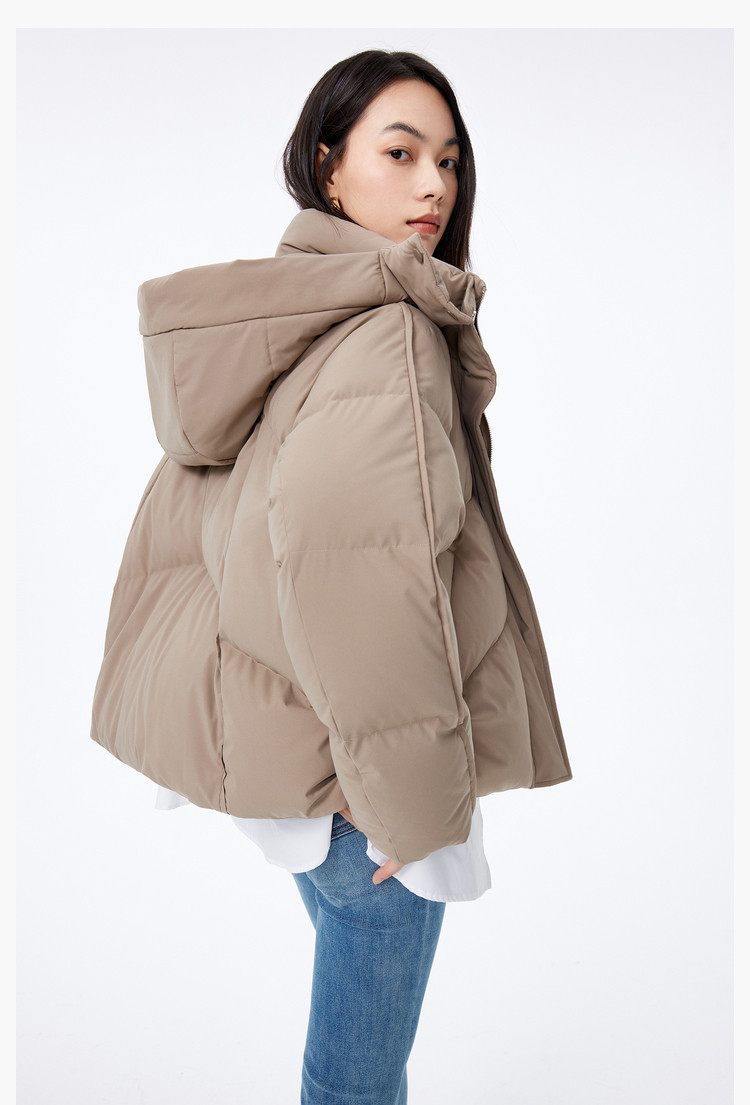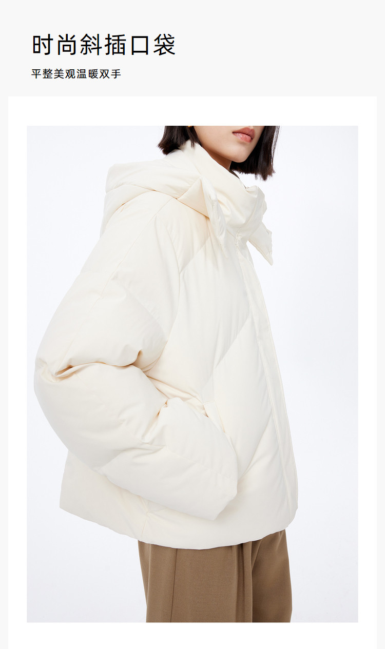 冬季蓬松鸭绒时尚休闲连帽通勤款羽绒服外套小个子 455643