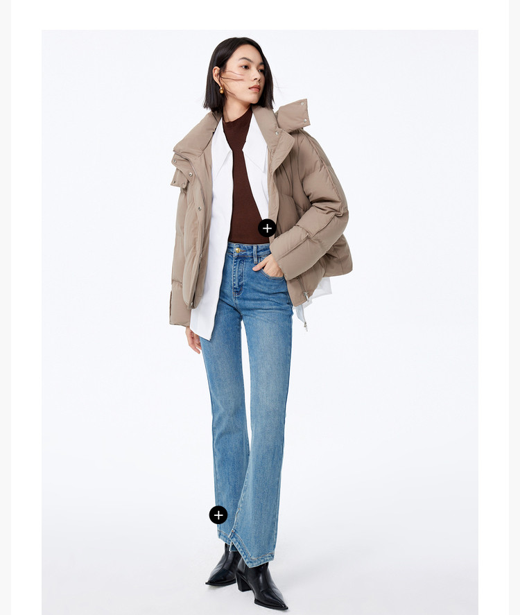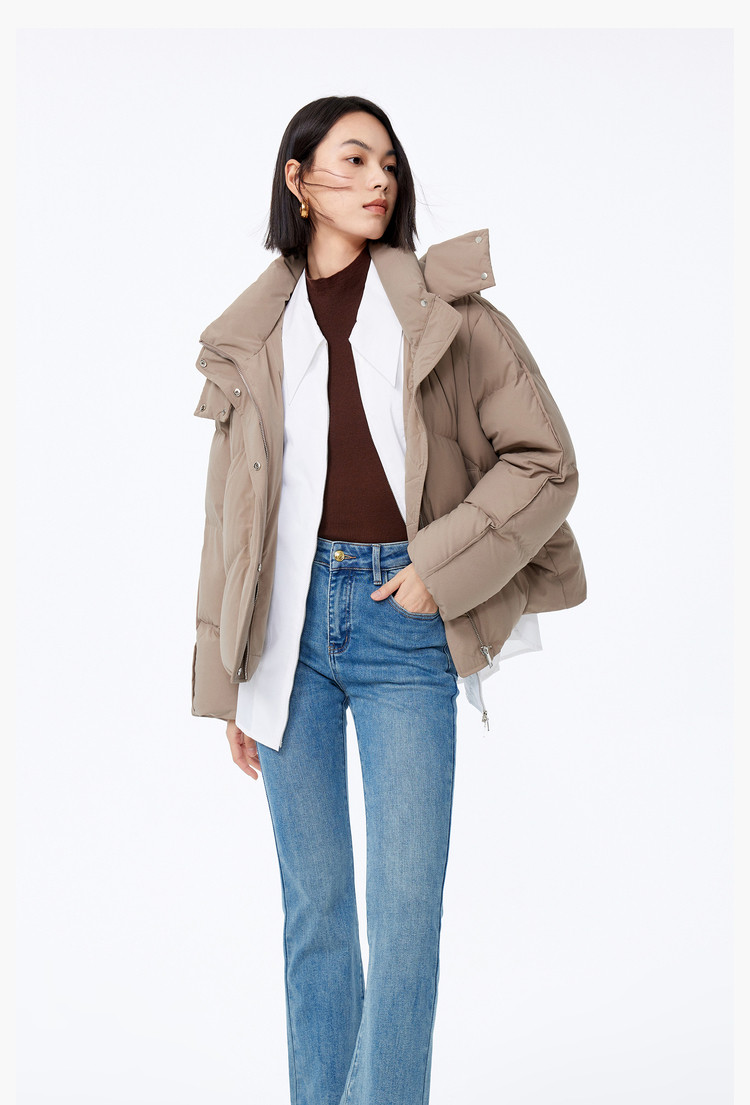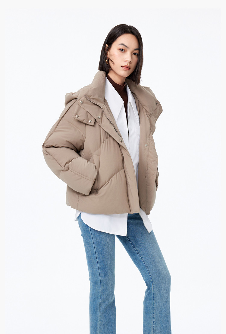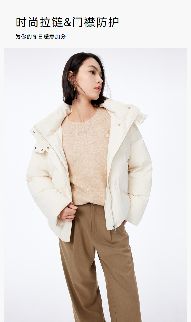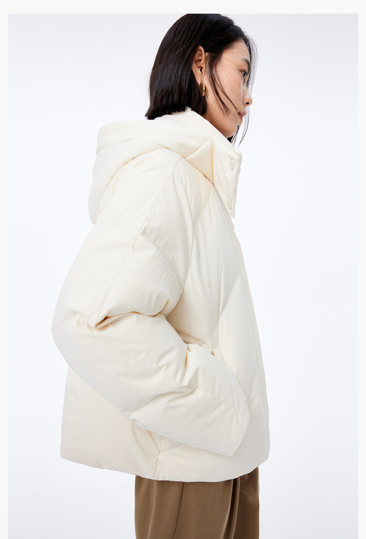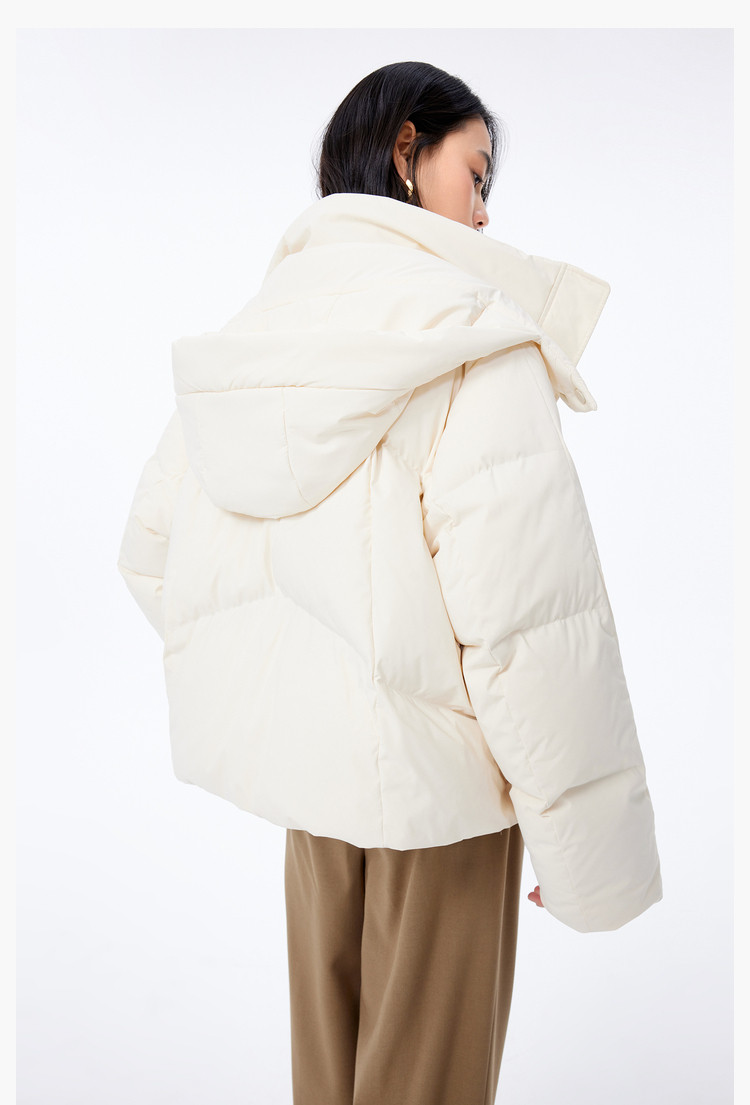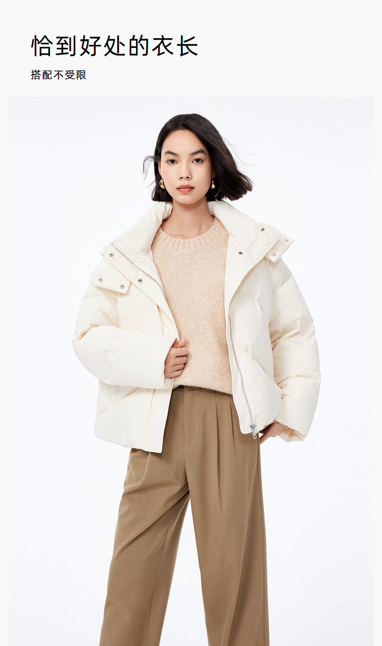 冬季蓬松鸭绒时尚休闲连帽通勤款羽绒服外套小个子 455643