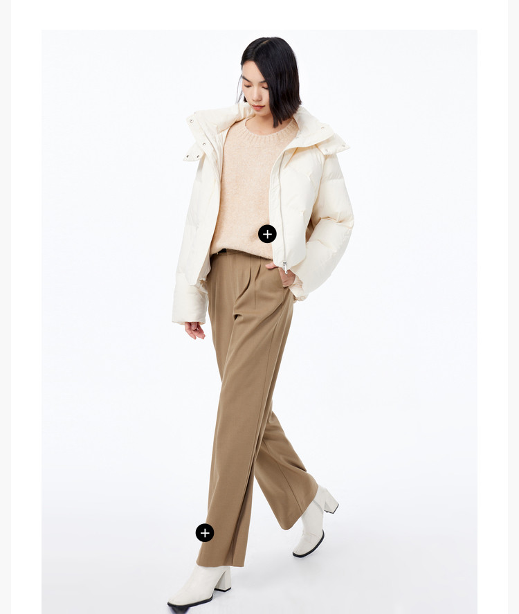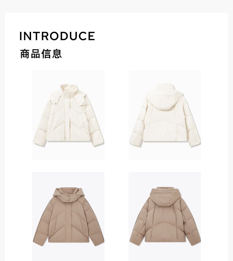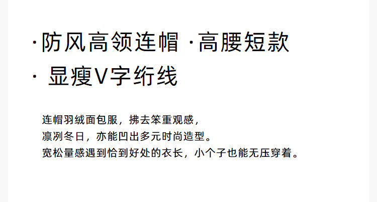 商品名称:冬季蓬松鸭绒时尚休闲连帽通勤款羽绒服外套小个子 455643