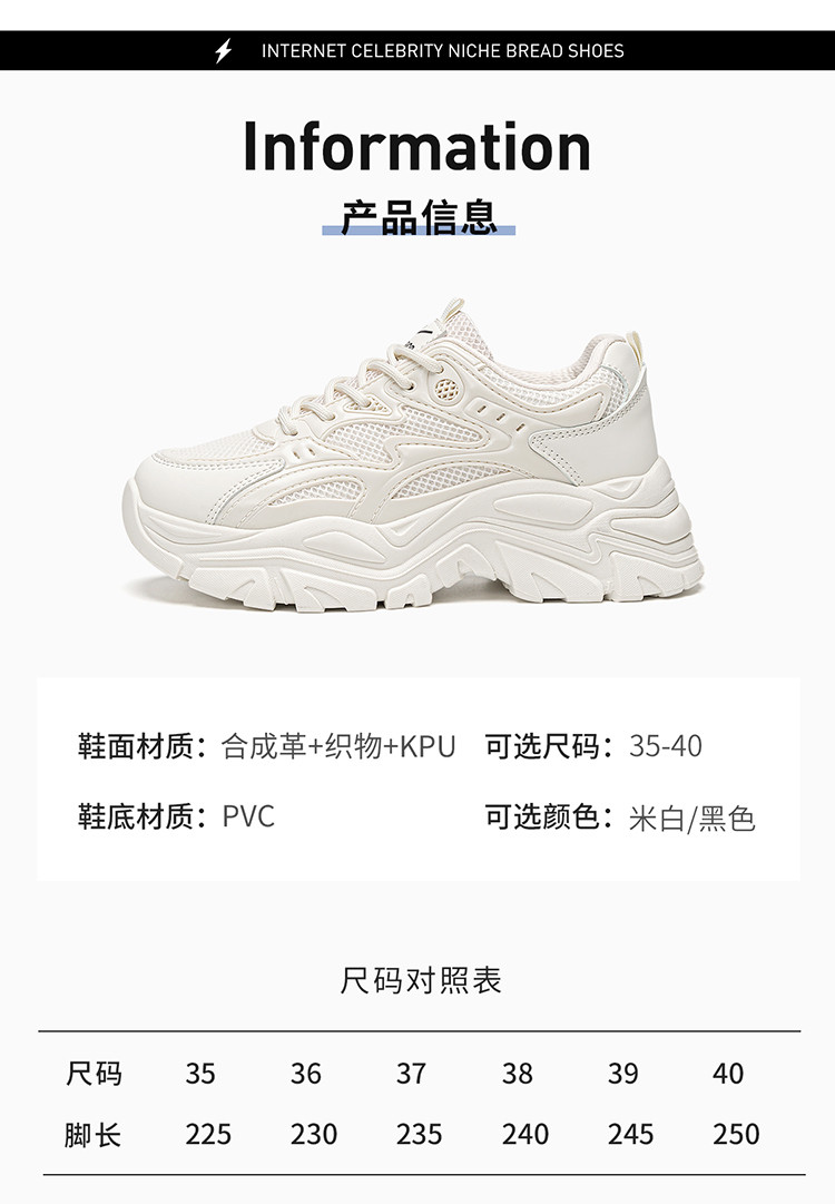 商品名称:【春季好物】潮流百搭女厚底老爹鞋舒适耐磨纯色学院风运动休闲鞋 498909