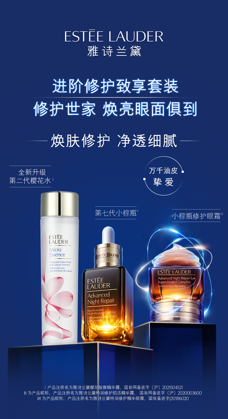 商品名称:Estee Lauder/雅诗兰黛 护肤套装 小棕瓶精华100ml+小棕瓶眼霜15ml+樱花水200ml