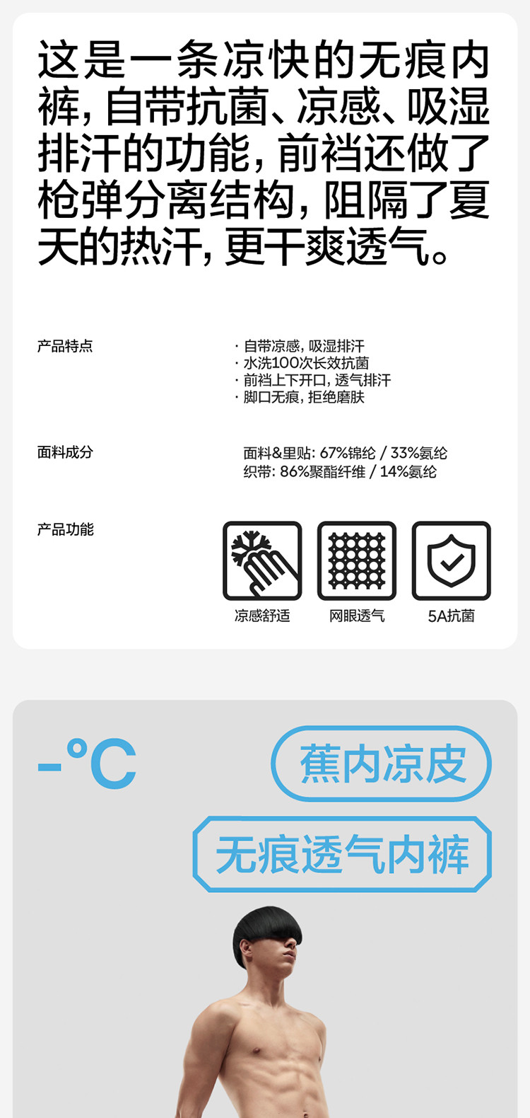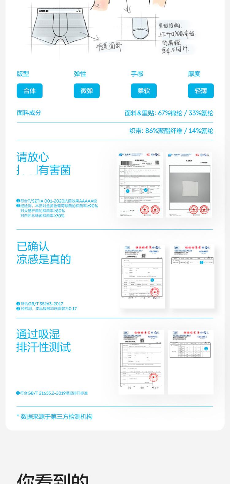商品名称:凉皮511Air男士平角内裤无痕冰丝平角网面四角裤3件装 807237