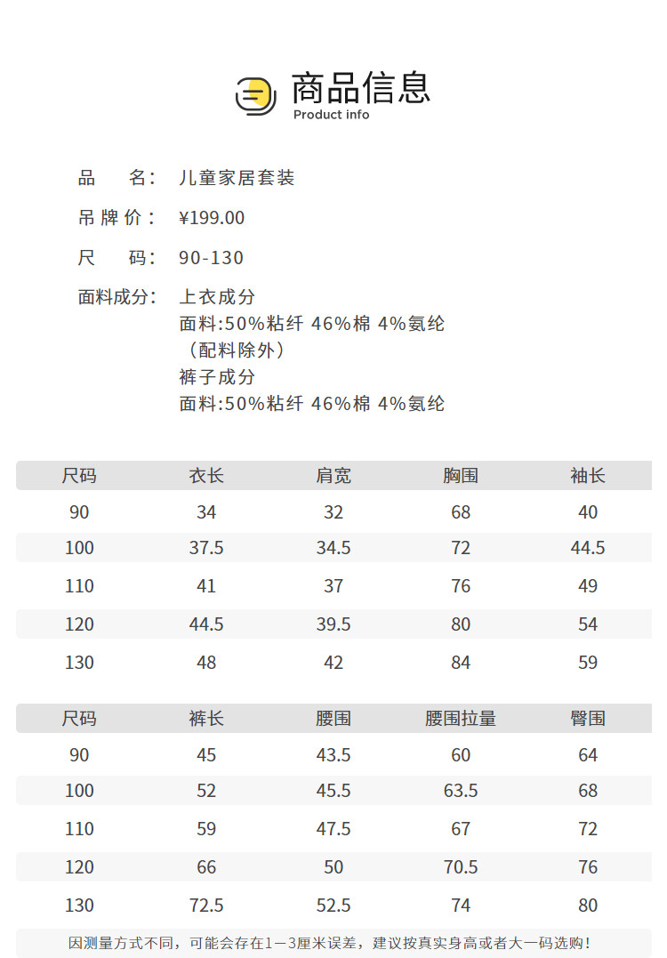 商品名称:儿童睡衣套装男童女童长袖套装春秋小童家居服柔软宽松打底可外穿 298053