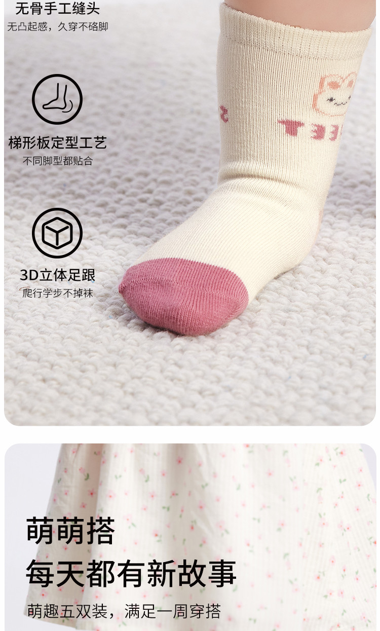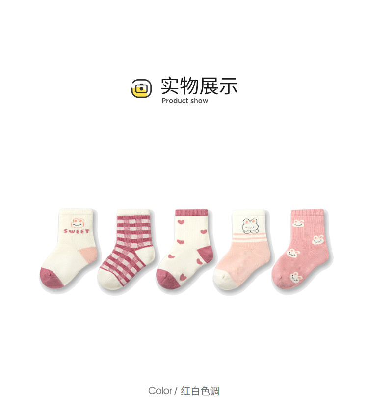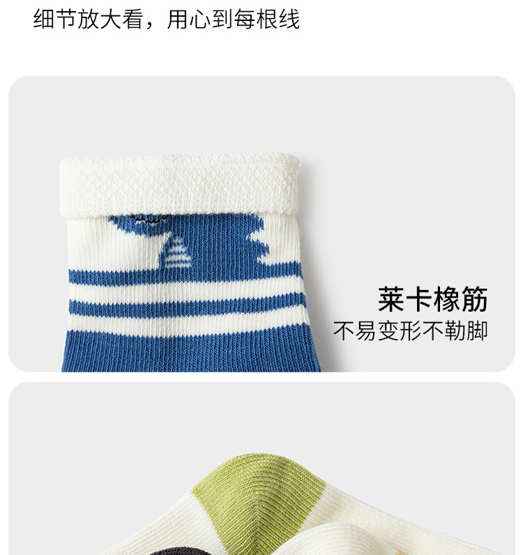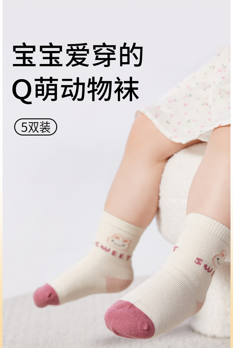 商品名称:萌趣可爱动物条纹潮流五双装袜子男童女童多色棉袜儿童宝宝 228421