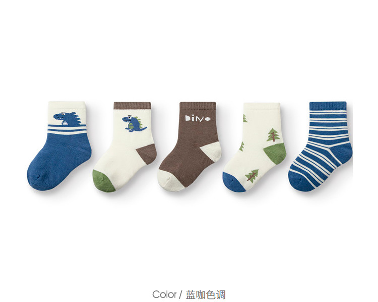 萌趣可爱动物条纹潮流五双装袜子男童女童多色棉袜儿童宝宝 228421
