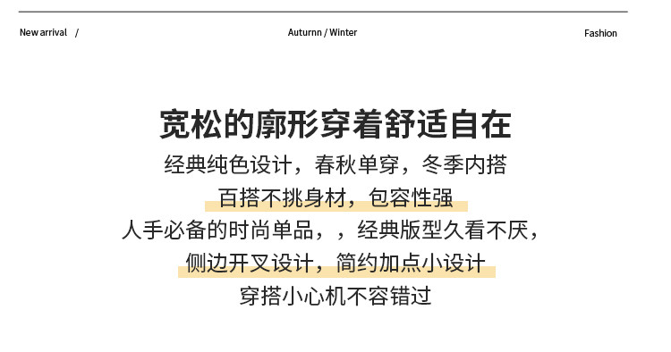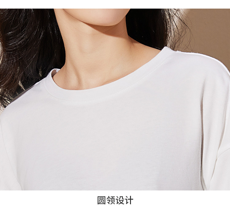 商品名称:米子旗春秋季款圆领女士T恤纯色下摆开叉长袖上衣女 701722