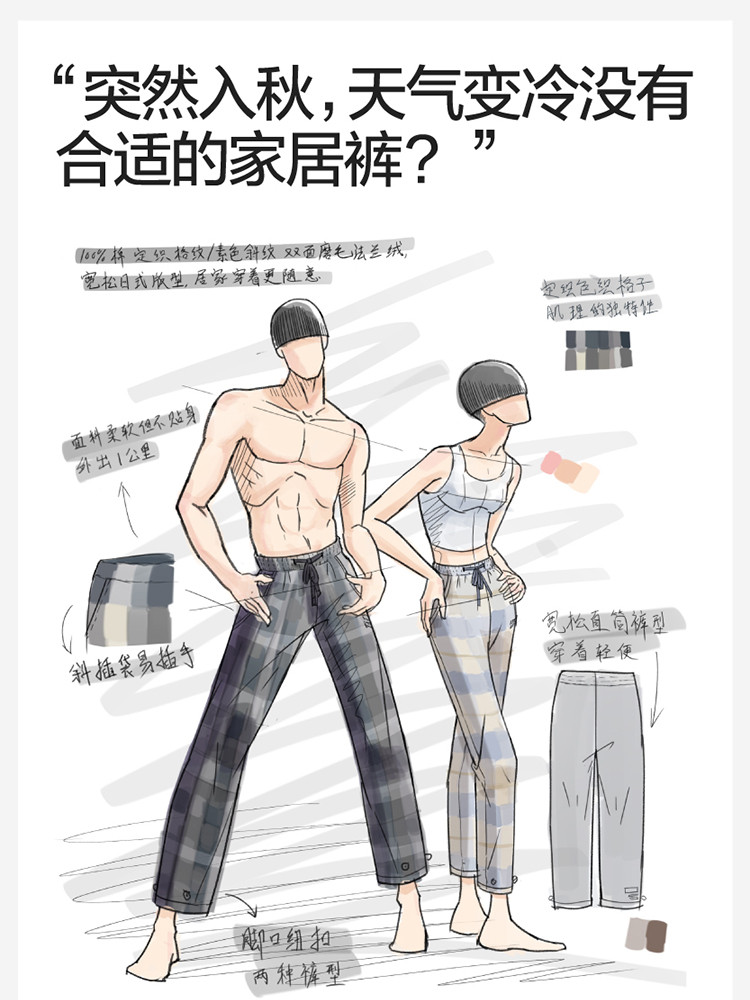 商品名称:【100%纯棉】505H睡裤舒适直筒裤两穿家居休闲裤情侣款 108485
