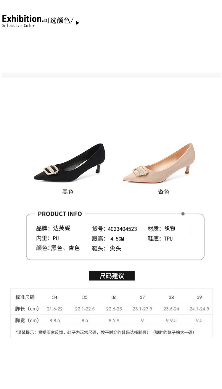 商品名称:【畅销尖货】夏季方扣尖头细跟高跟鞋时装鞋女鞋套脚女单鞋 460119