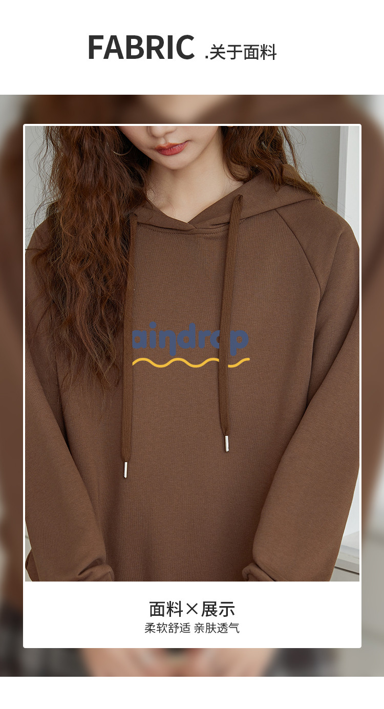商品名称:米子旗秋冬季连帽字母印花卫衣女通勤百搭宽松长袖上衣 567706