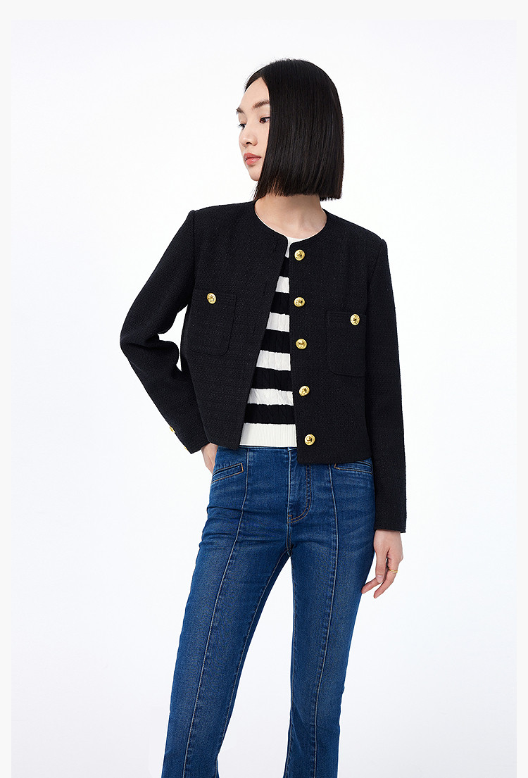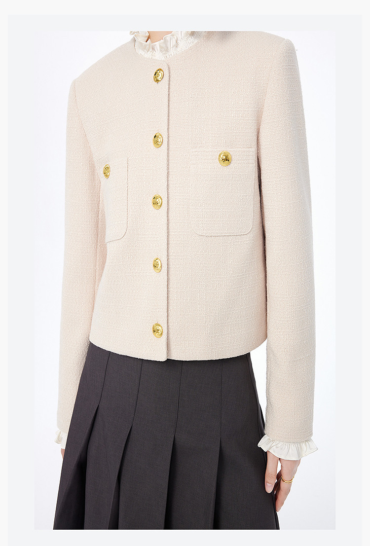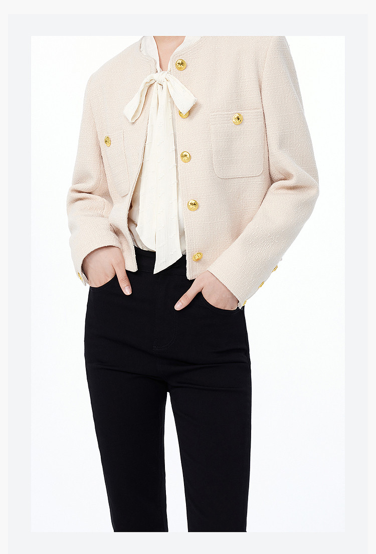 春季复古小香风气质纯色显瘦宽松圆领短外套小个子 104091