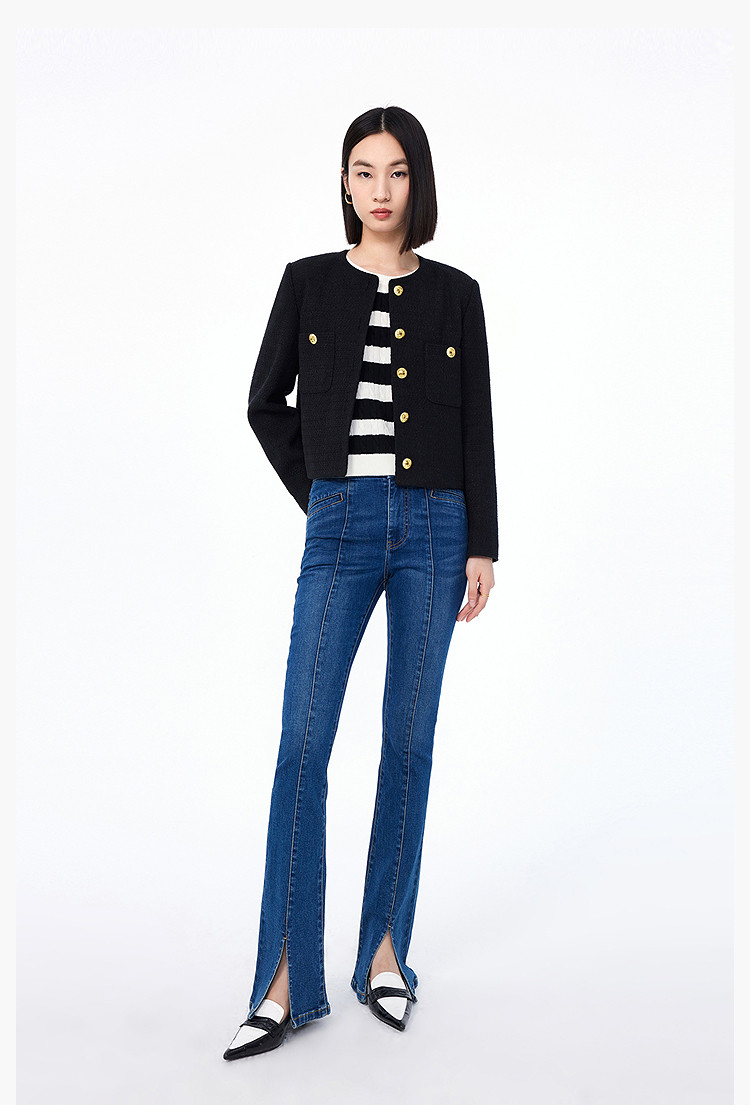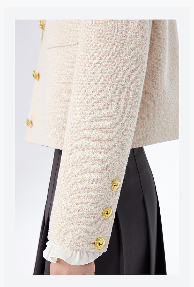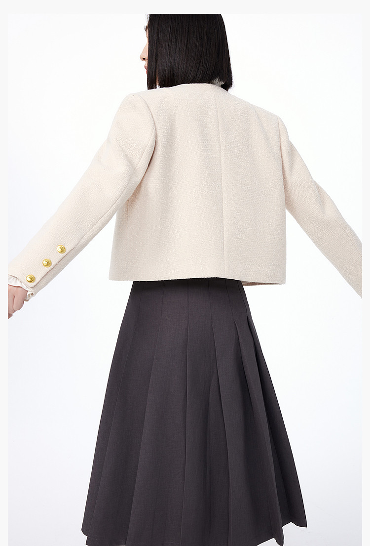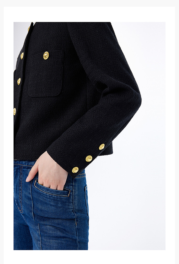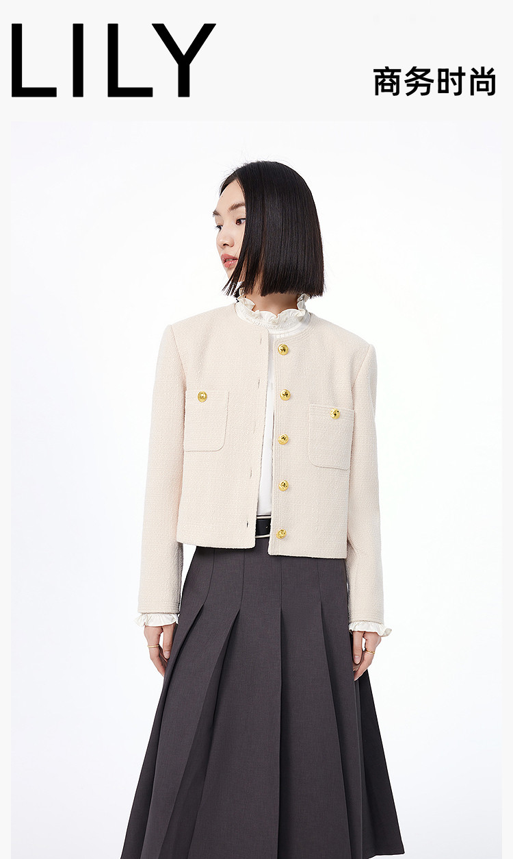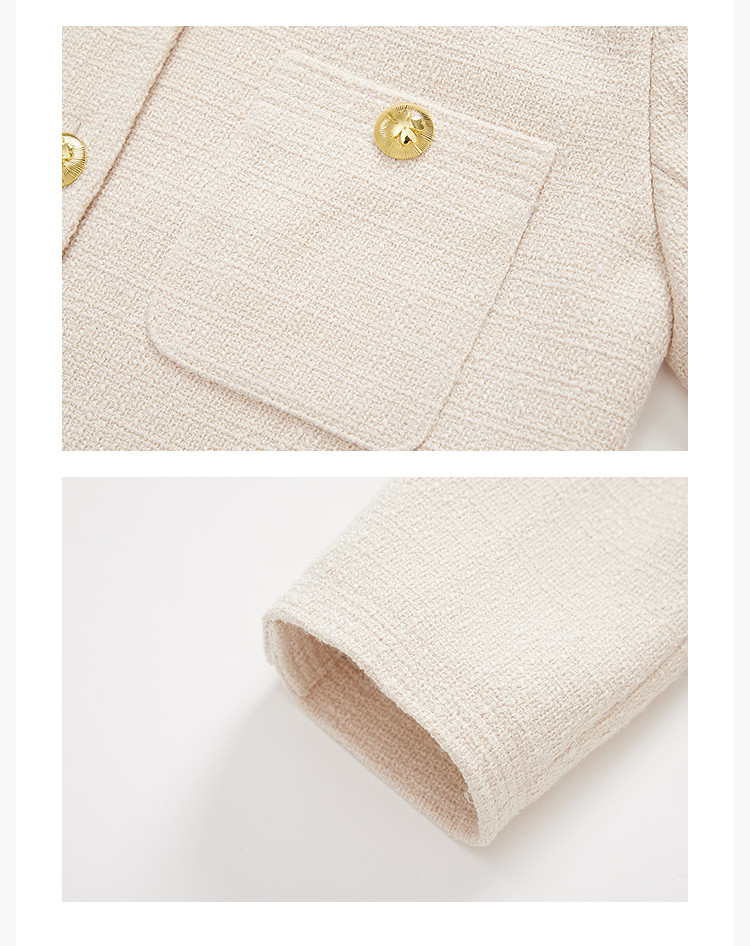 商品名称:春季复古小香风气质纯色显瘦宽松圆领短外套小个子 104091