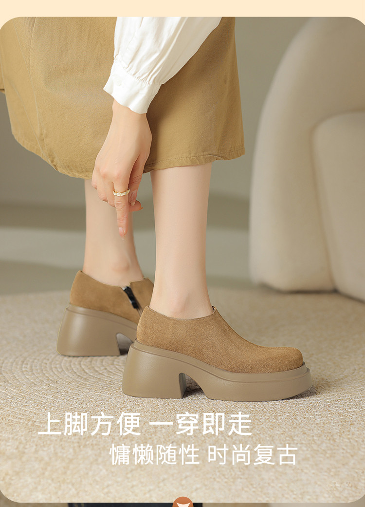 爆款单鞋女松糕厚底鞋增高小个子及裸靴磨砂质感通勤反绒皮鞋女 516378