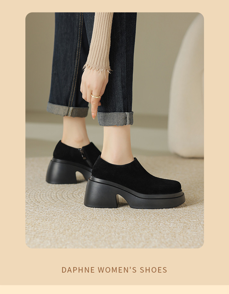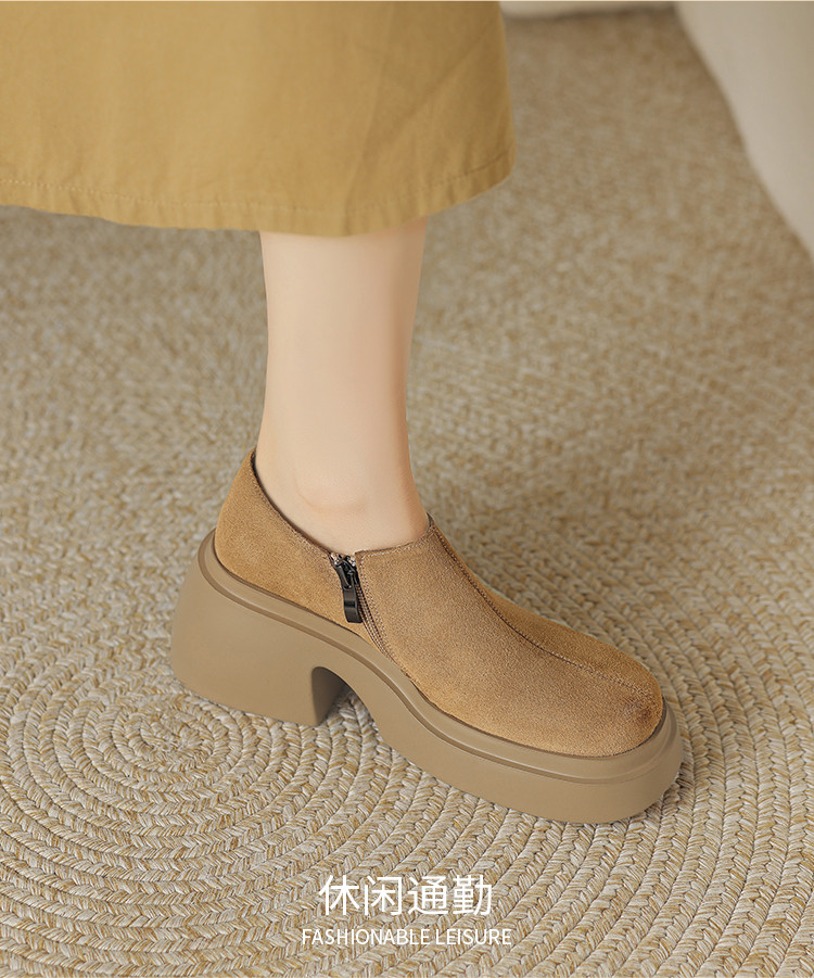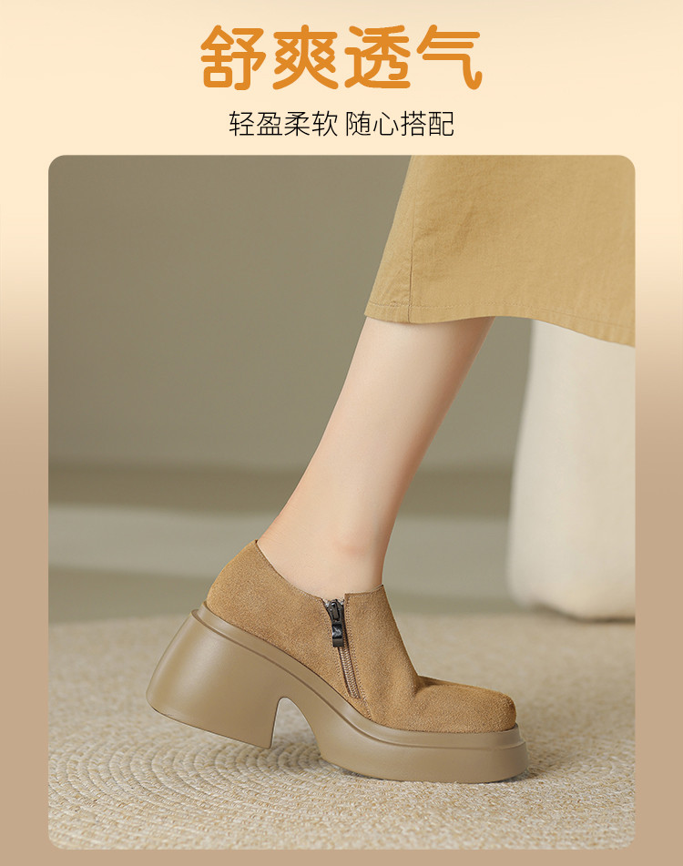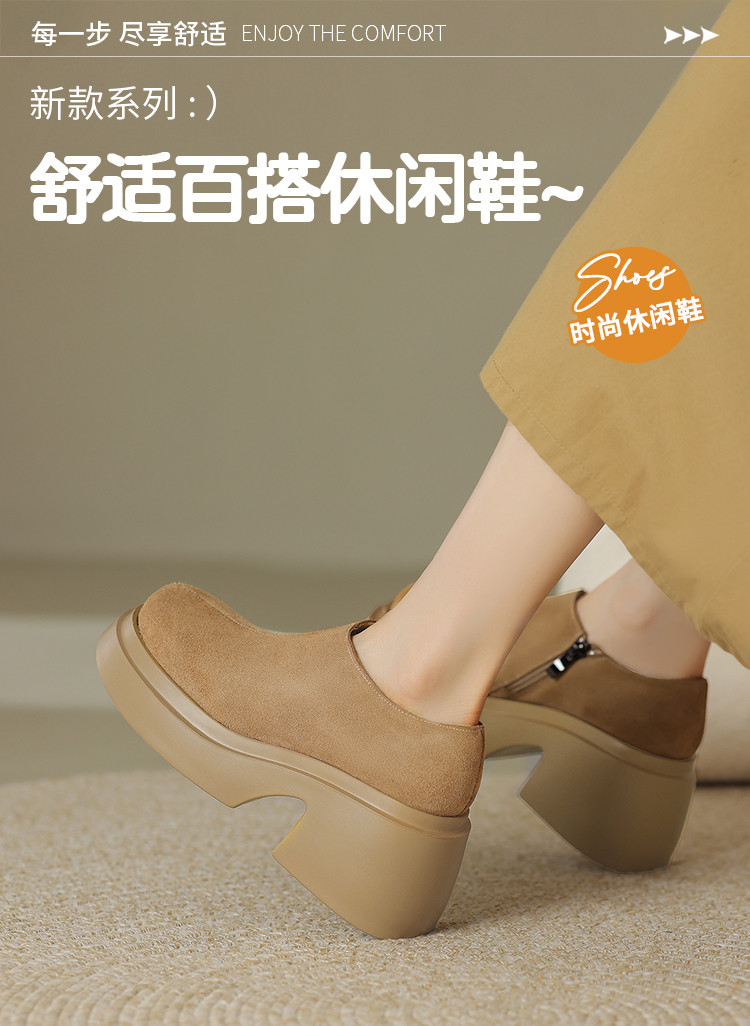 商品名称:爆款单鞋女松糕厚底鞋增高小个子及裸靴磨砂质感通勤反绒皮鞋女 516378