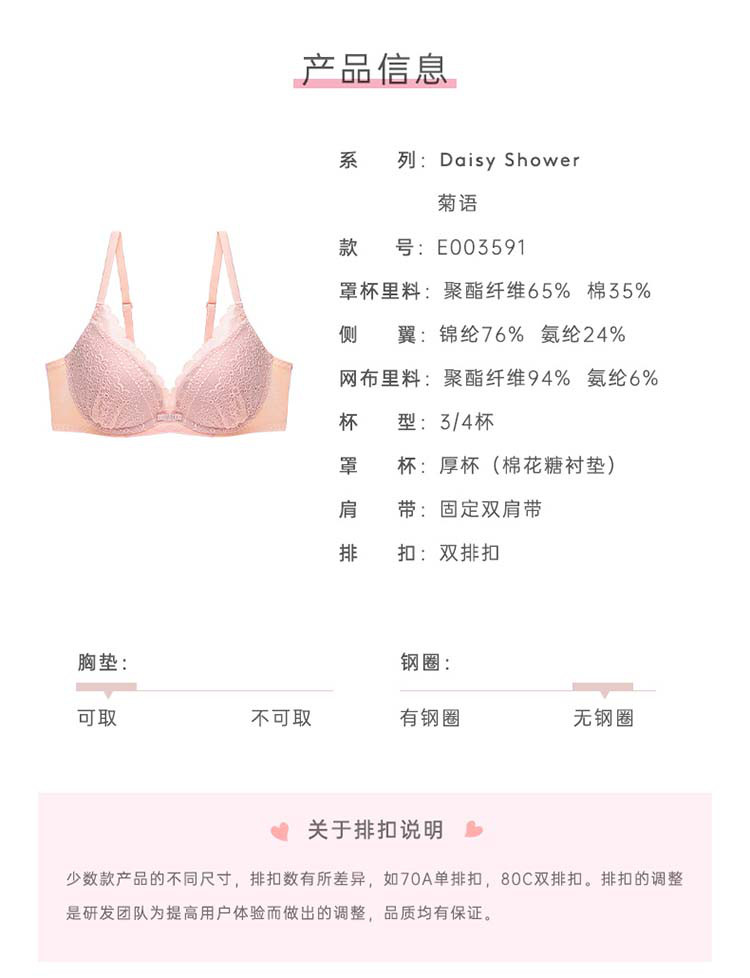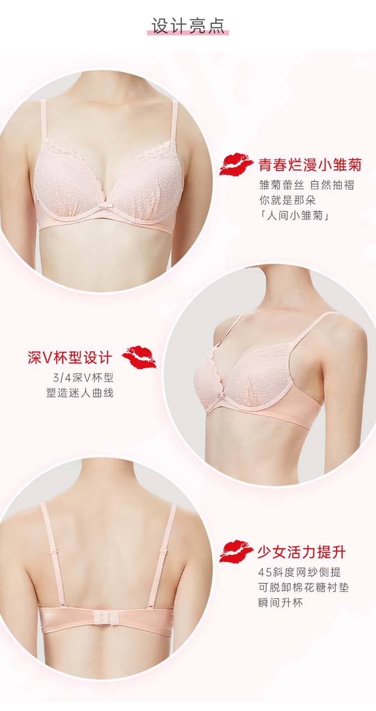 商品名称:【小胸聚拢不空杯】黛安芬文胸轻柔蕾丝无钢圈内衣女E003591 414344