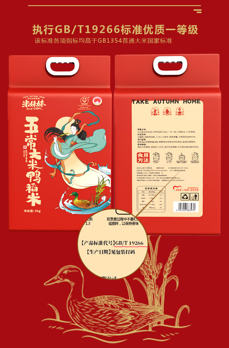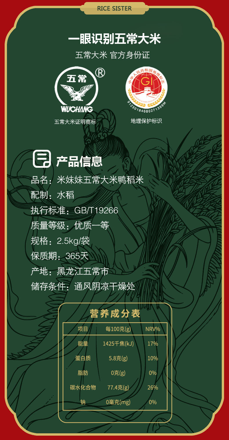 商品名称:米妹妹五常大米鸭稻米2.5kg/5kg
