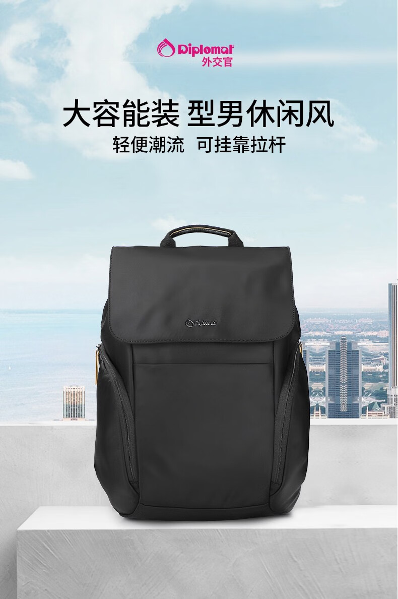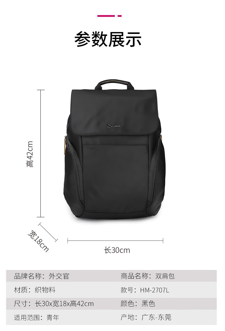 商品名称:外交官双肩包HM-2707L-黑色300*180*420mm