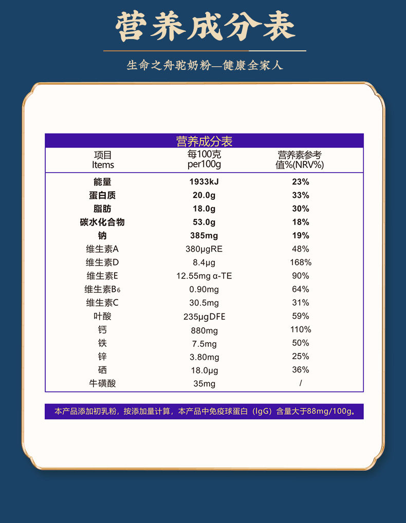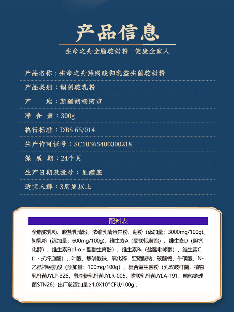 商品名称:生命之舟燕窝酸初乳 配方驼奶粉中老年成人骆驼奶粉