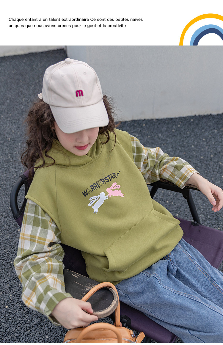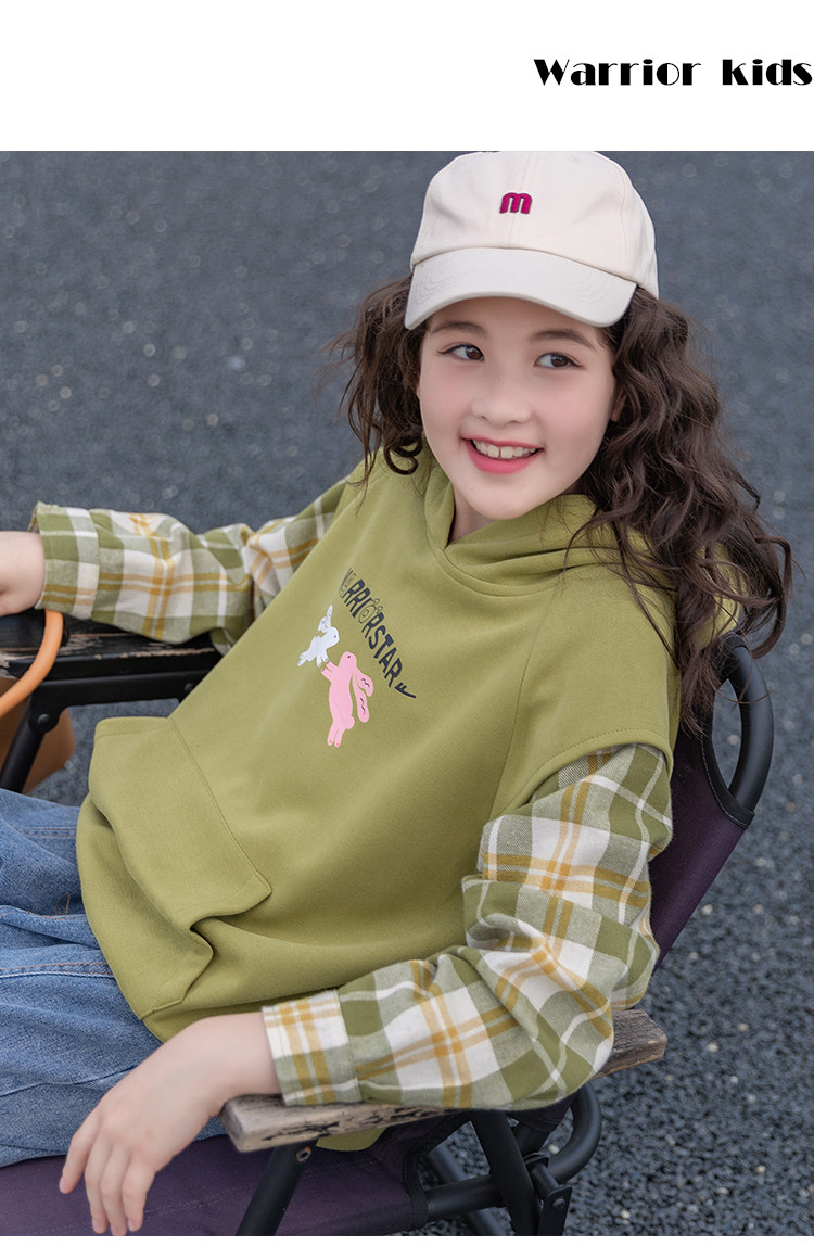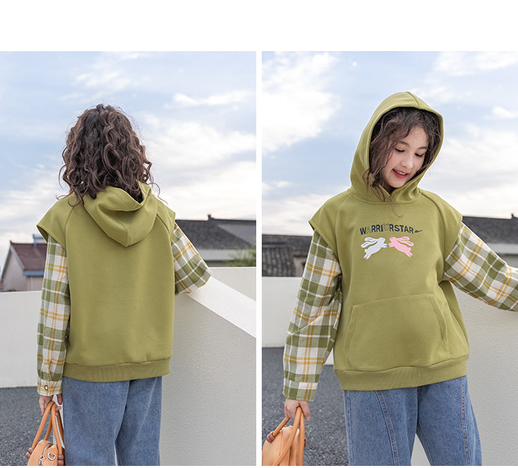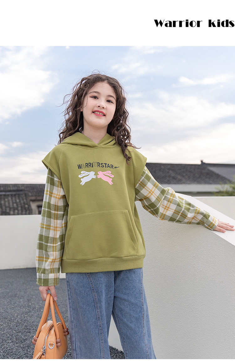 商品名称:【加绒可选】春季女童假两件连帽卫衣+收脚牛仔裤儿童套装 596755