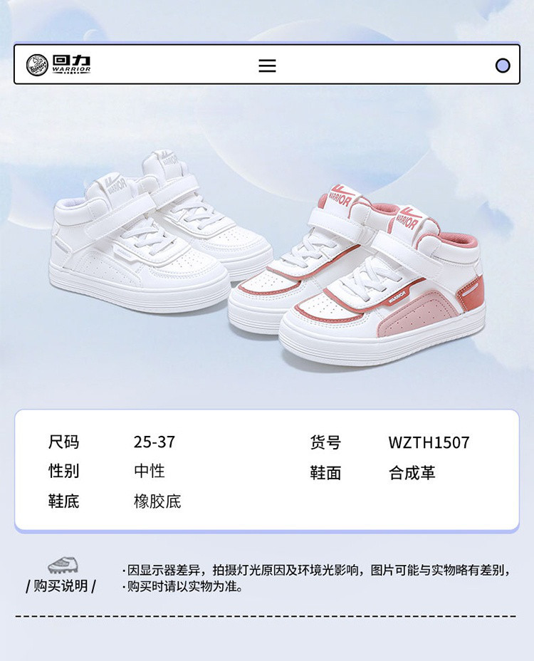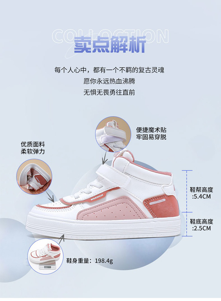 商品名称:【春季热卖】时尚百搭儿童小白鞋轻便舒适高帮板鞋童鞋户外休闲鞋 956675