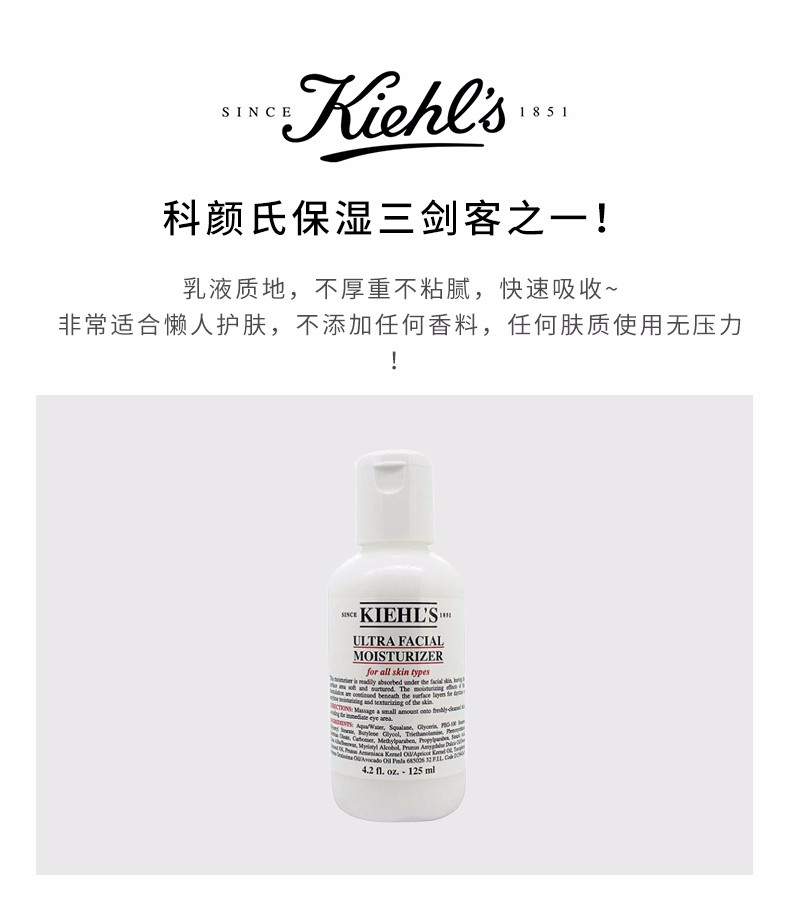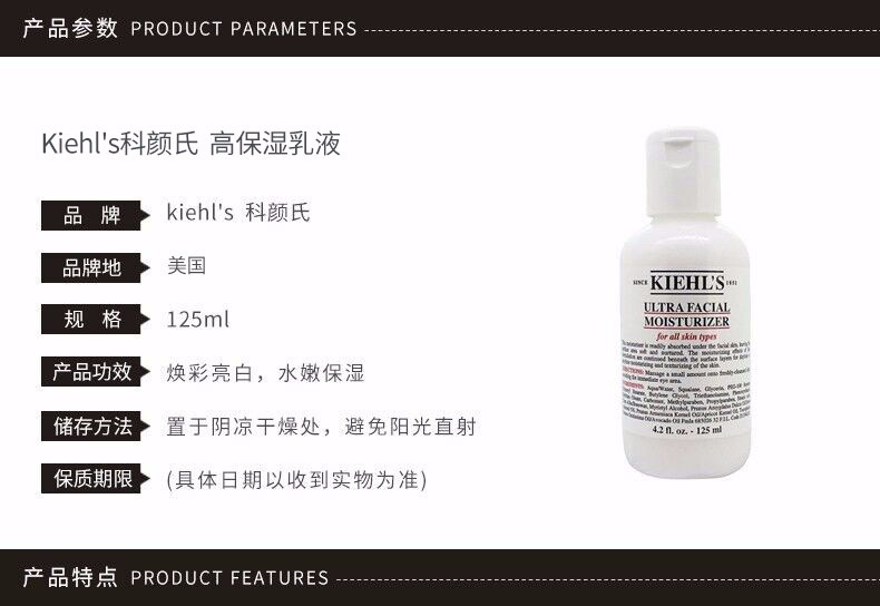 商品名称:Kiehl's/科颜氏 高保湿乳液 125ml/250ml 干皮挚爱