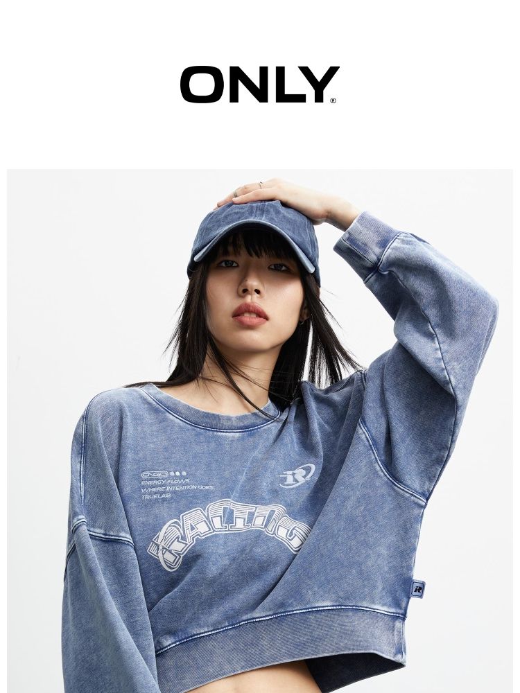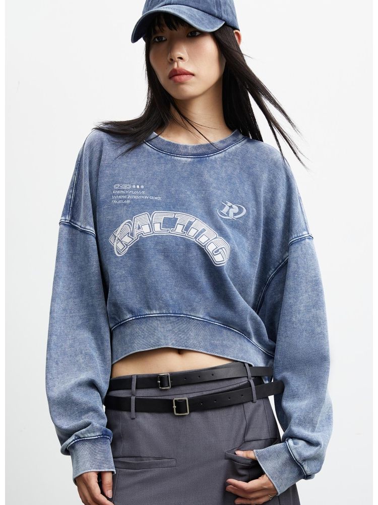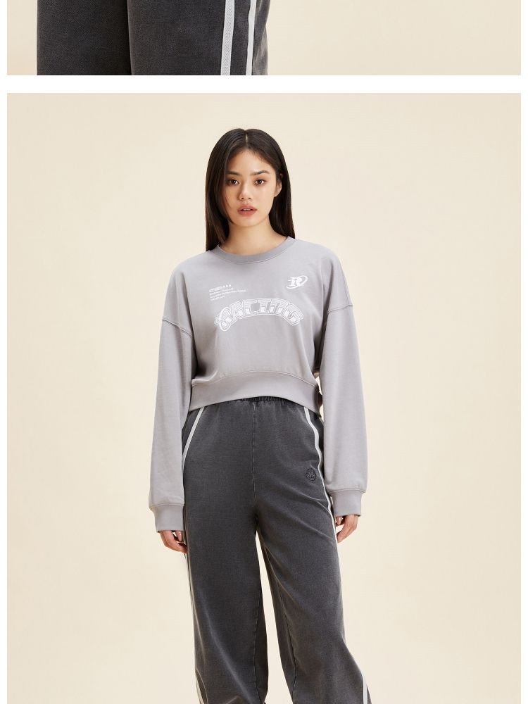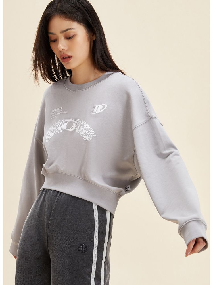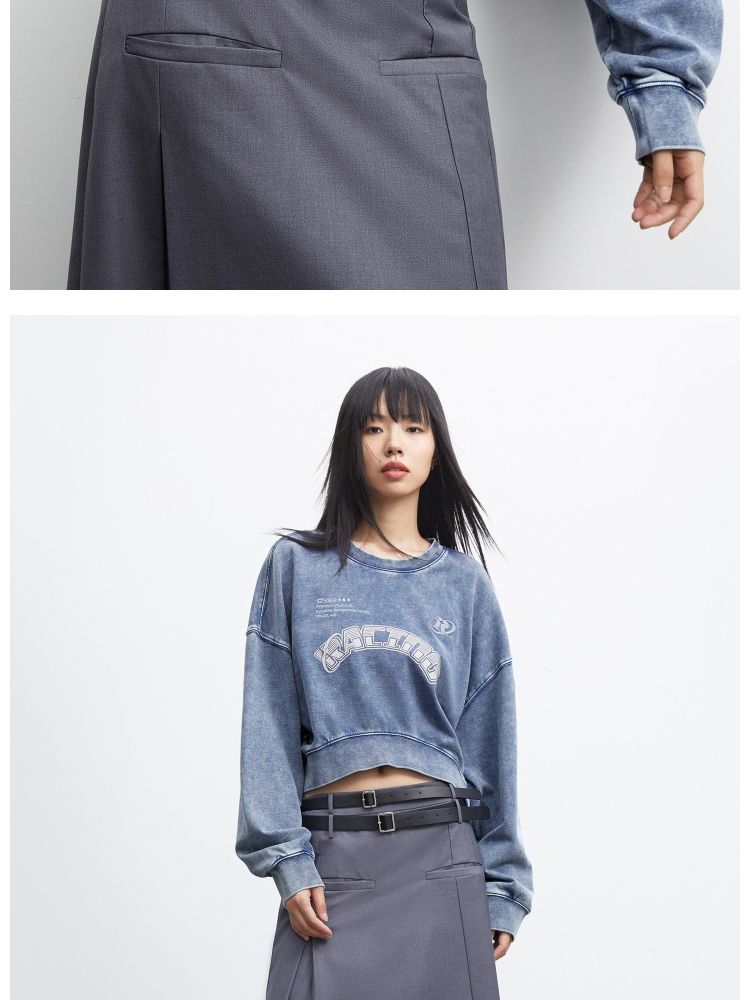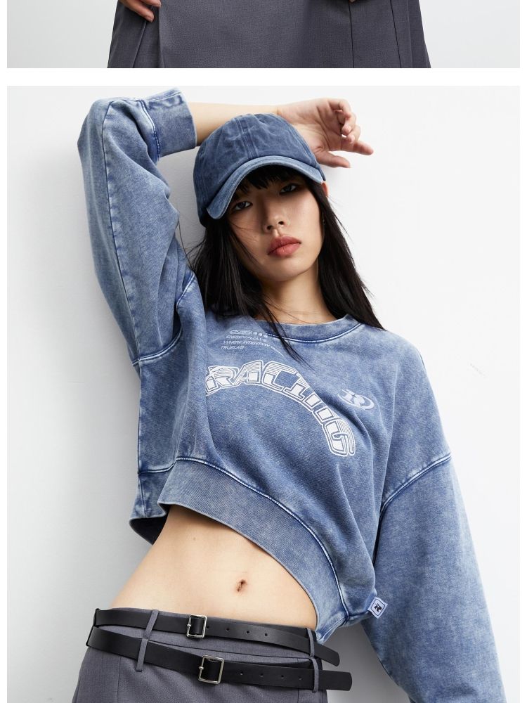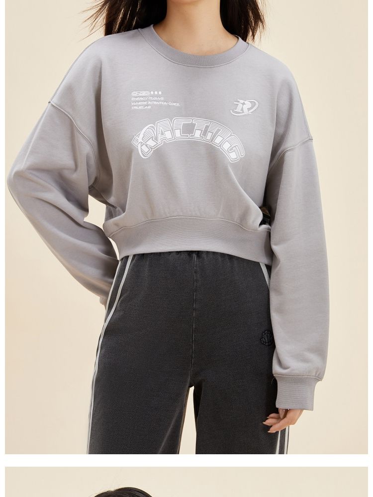 【弧形下摆】春季百搭刺绣拼接圆领短款卫衣女 175706