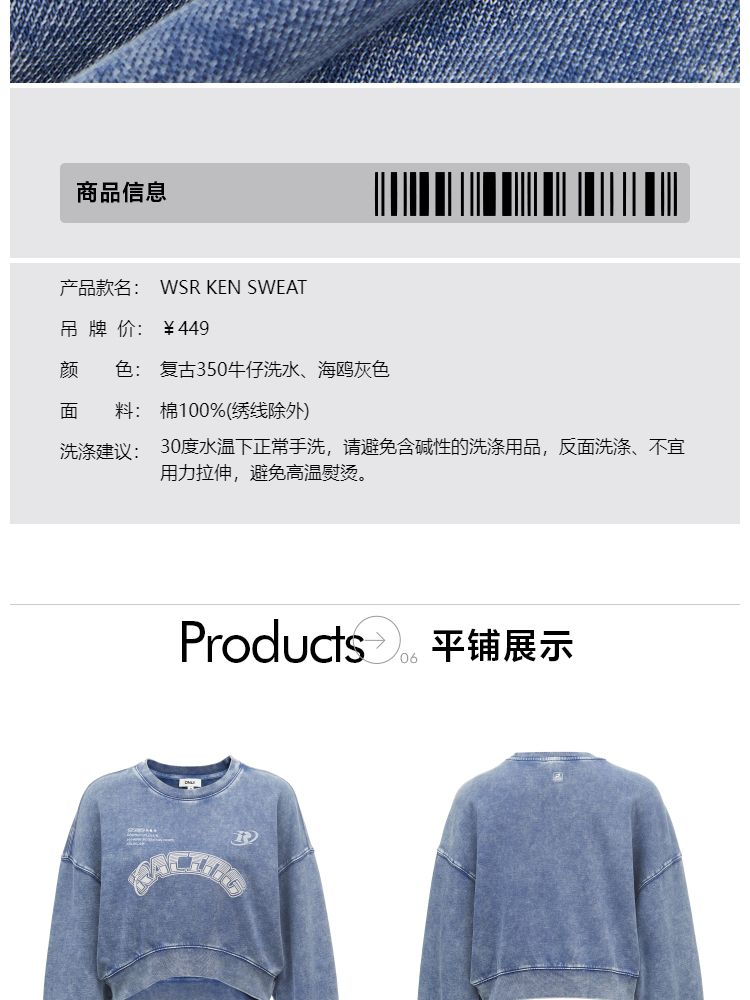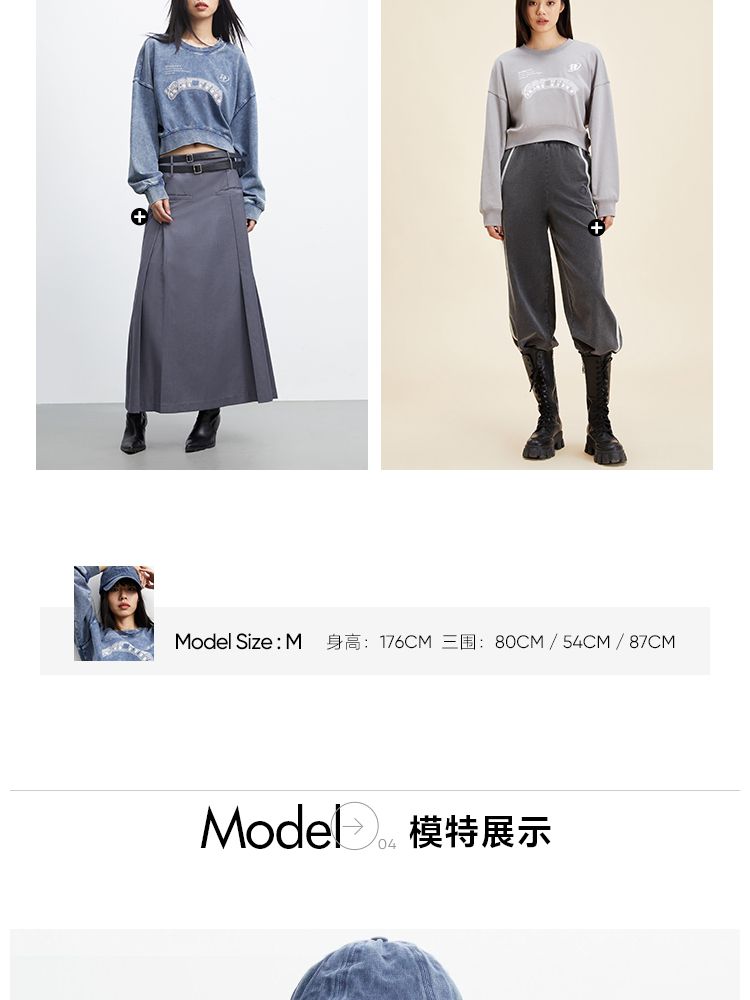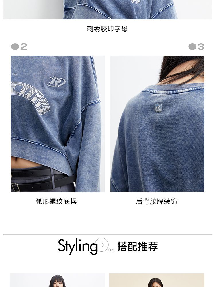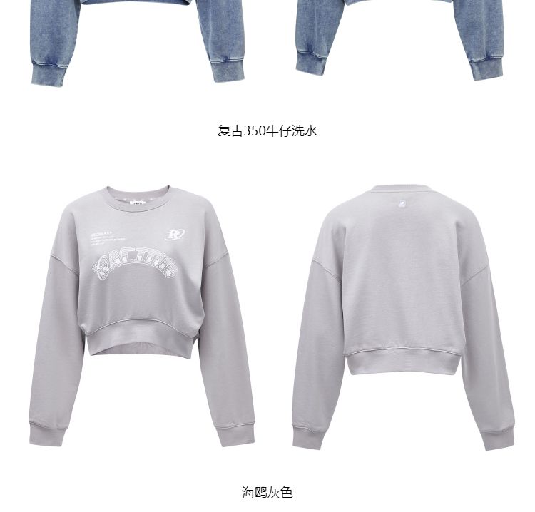 商品名称:【弧形下摆】春季百搭刺绣拼接圆领短款卫衣女 175706