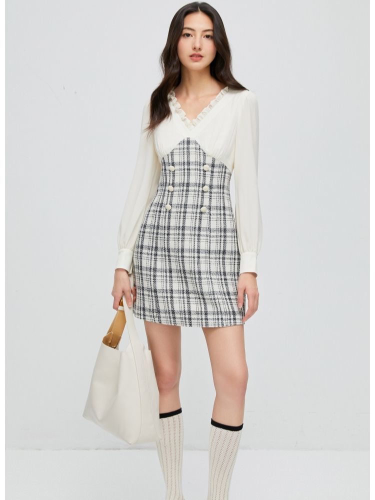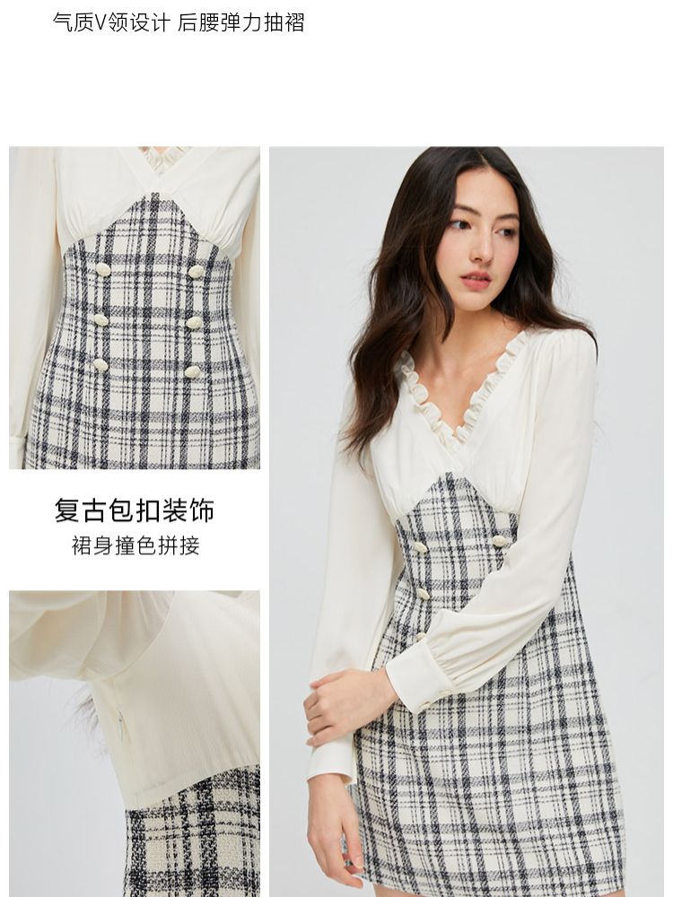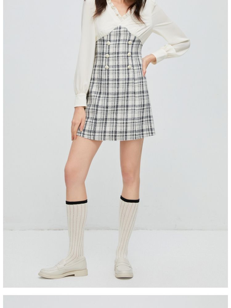 商品名称:【千金小香风】夏季气质小香风撞色拼接V领短款连衣裙女 508506