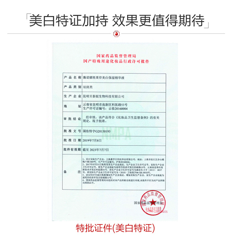 商品名称:Winqan/薇诺娜 熊果苷保湿精华液30ml 补水保湿