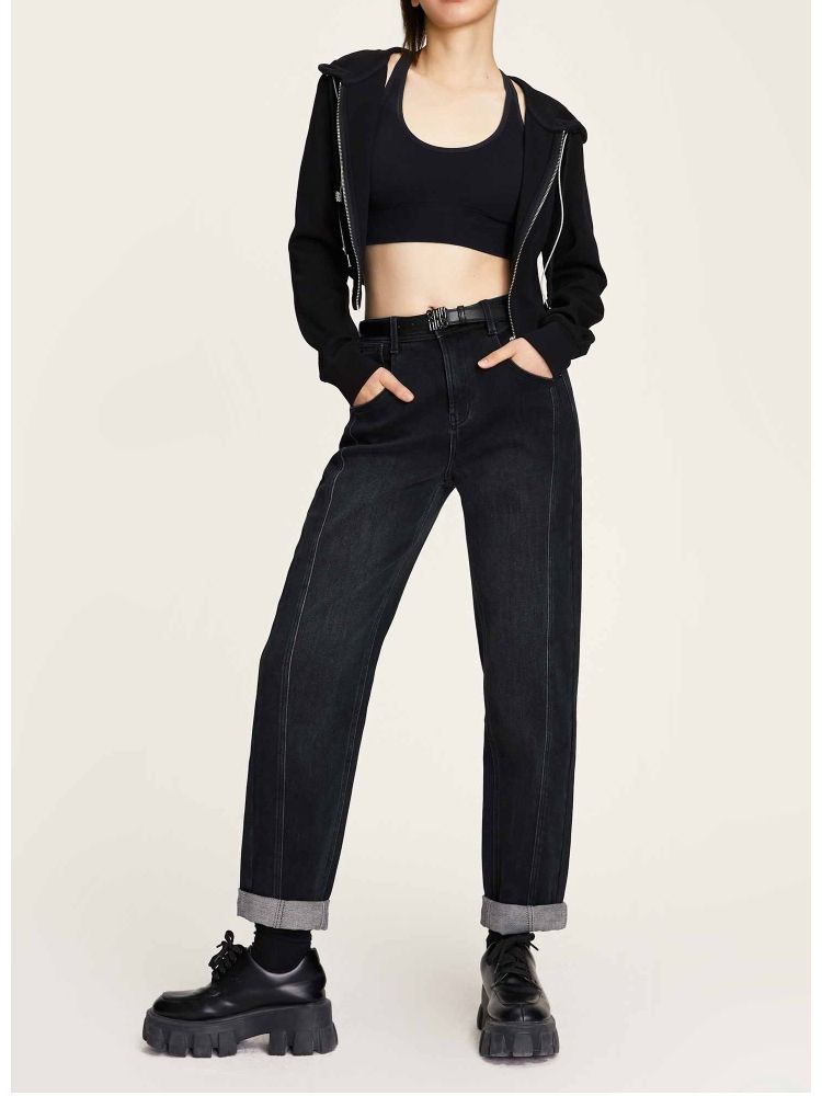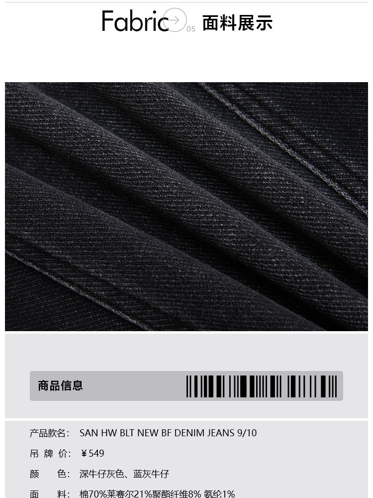 商品名称:【质感皮腰带】夏季含莱赛尔修身男友裤高腰九分牛仔裤女 113050