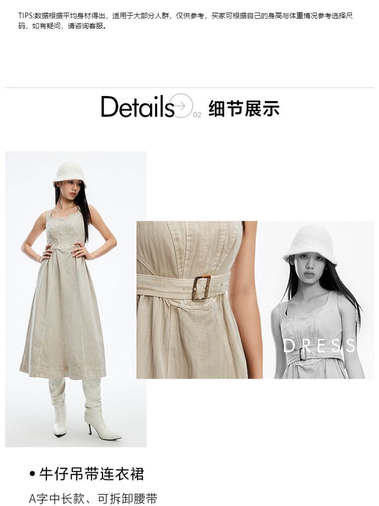 商品名称:【福利款】 夏季A字中长款牛仔吊带连衣裙女 938778
