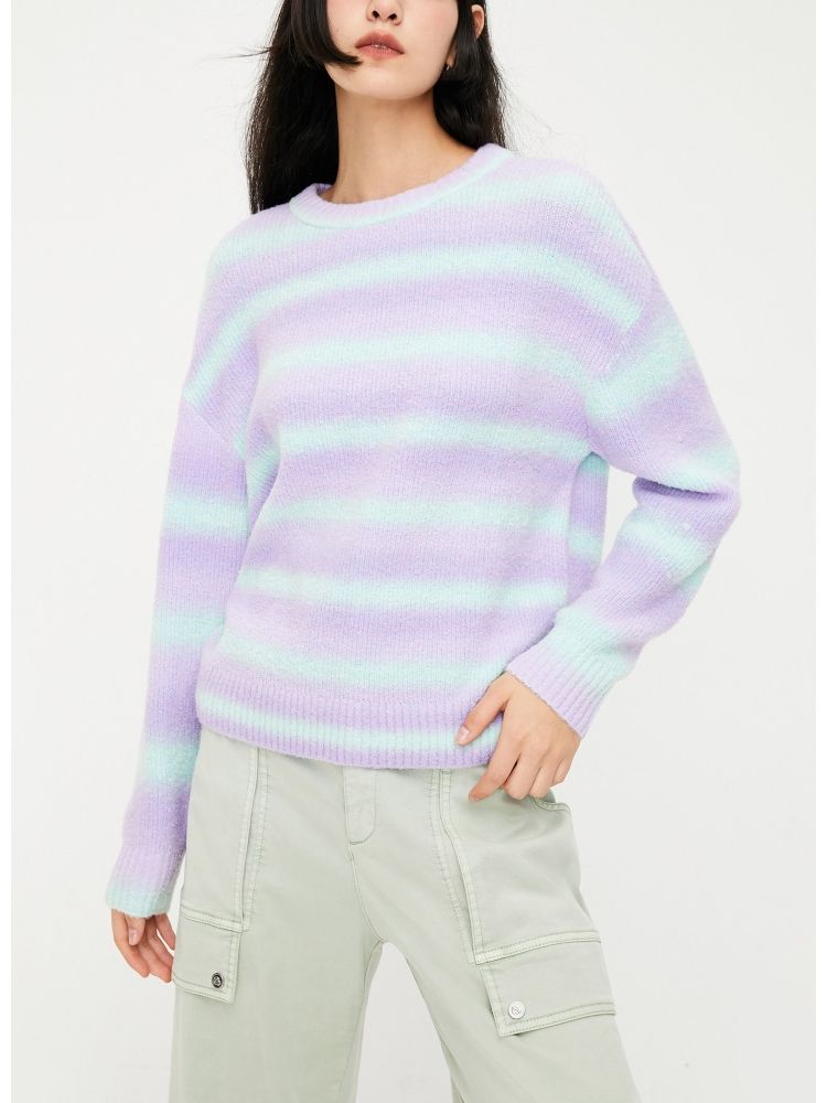 【宽松条纹】春季气质百搭渐变条纹圆领宽松针织衫女 658138