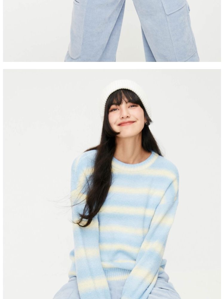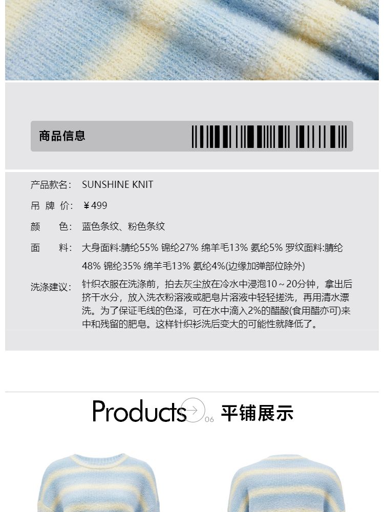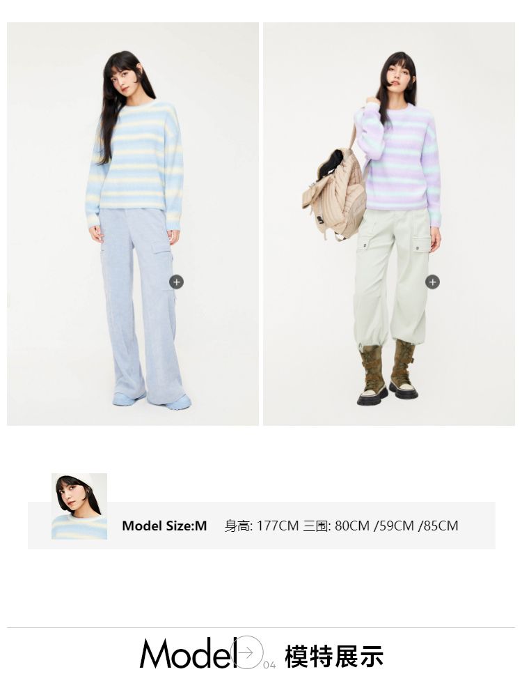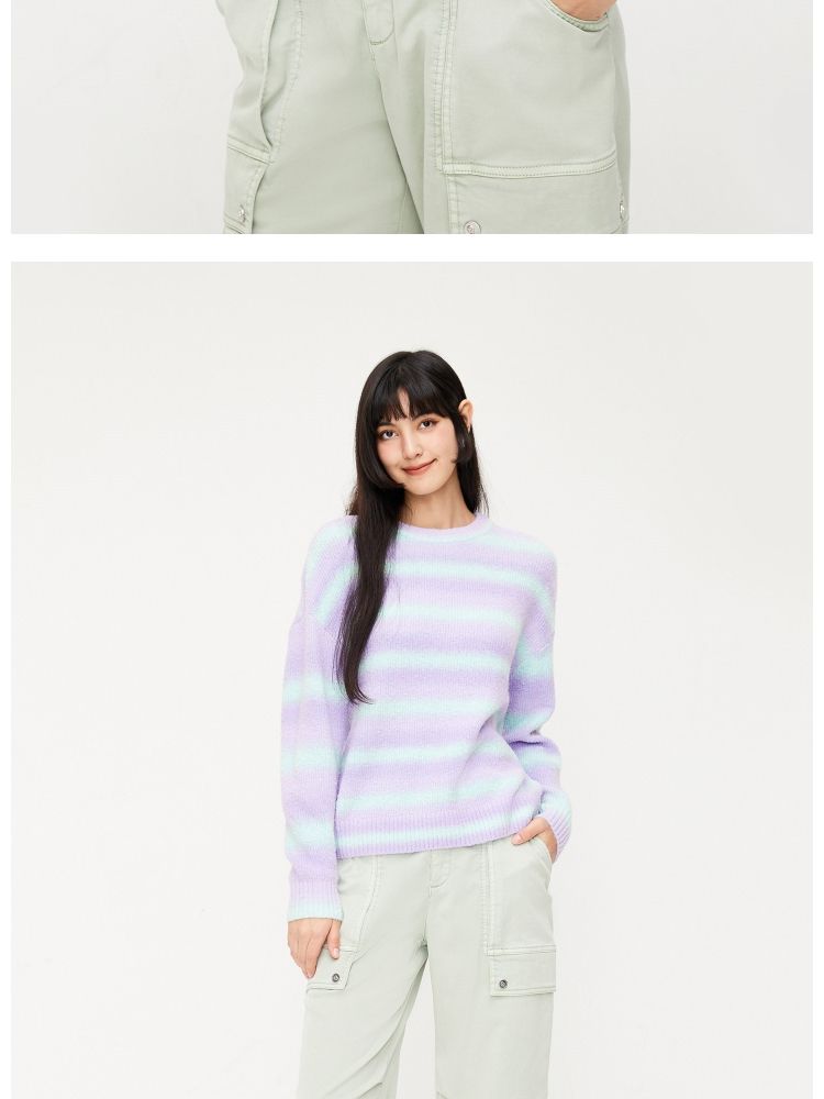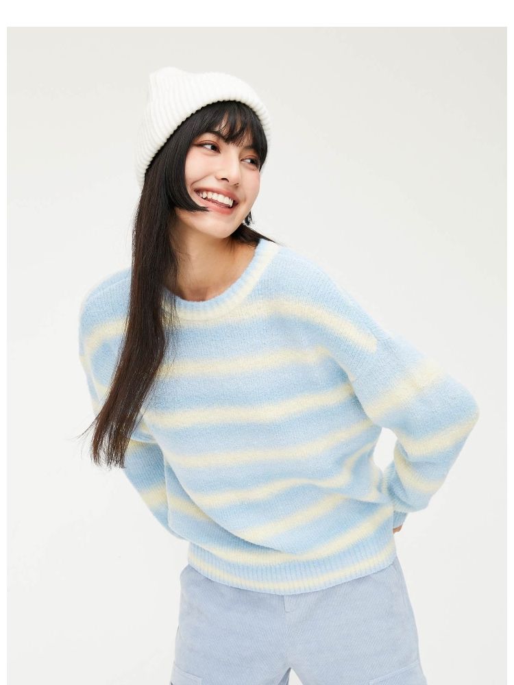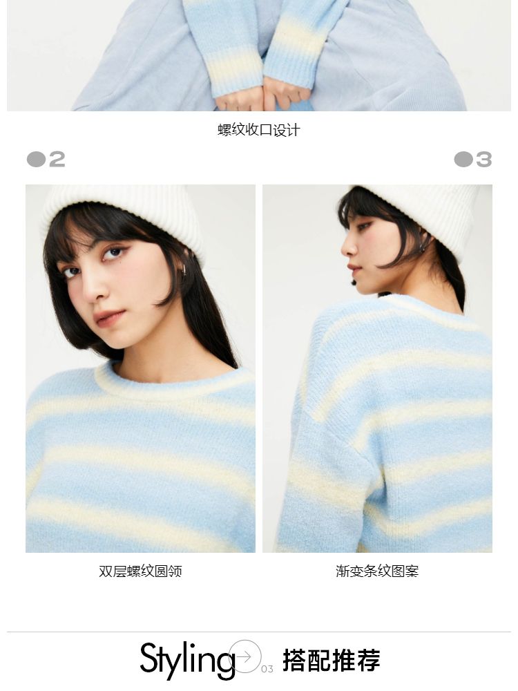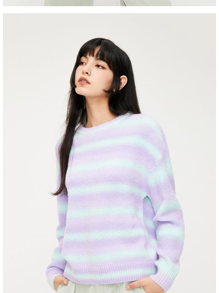 商品名称:【宽松条纹】春季气质百搭渐变条纹圆领宽松针织衫女 658138