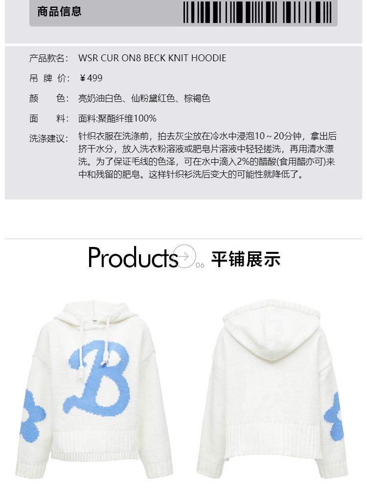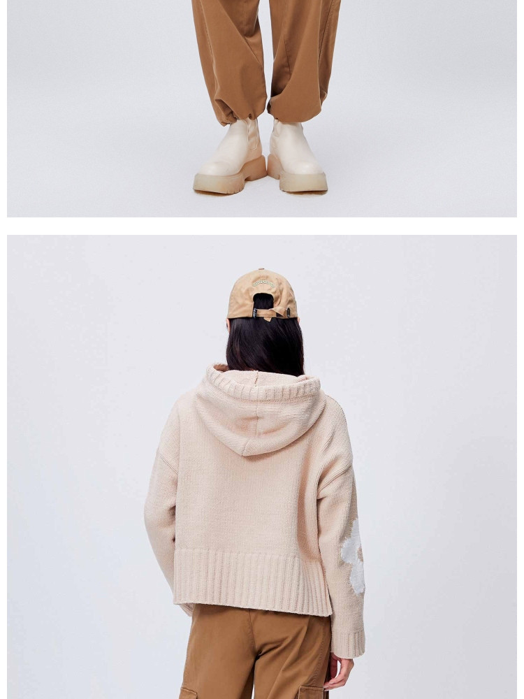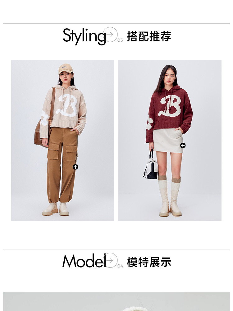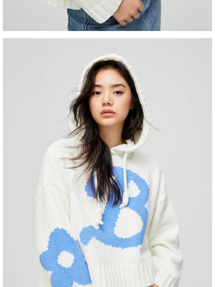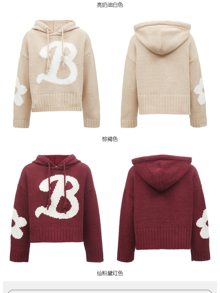 商品名称:【连帽绑带设计】春季学院风减龄字母连帽宽松抽绳针织衫女 259802