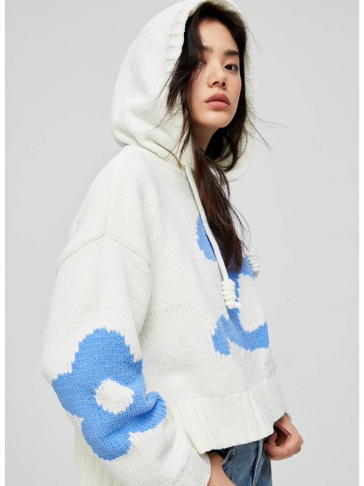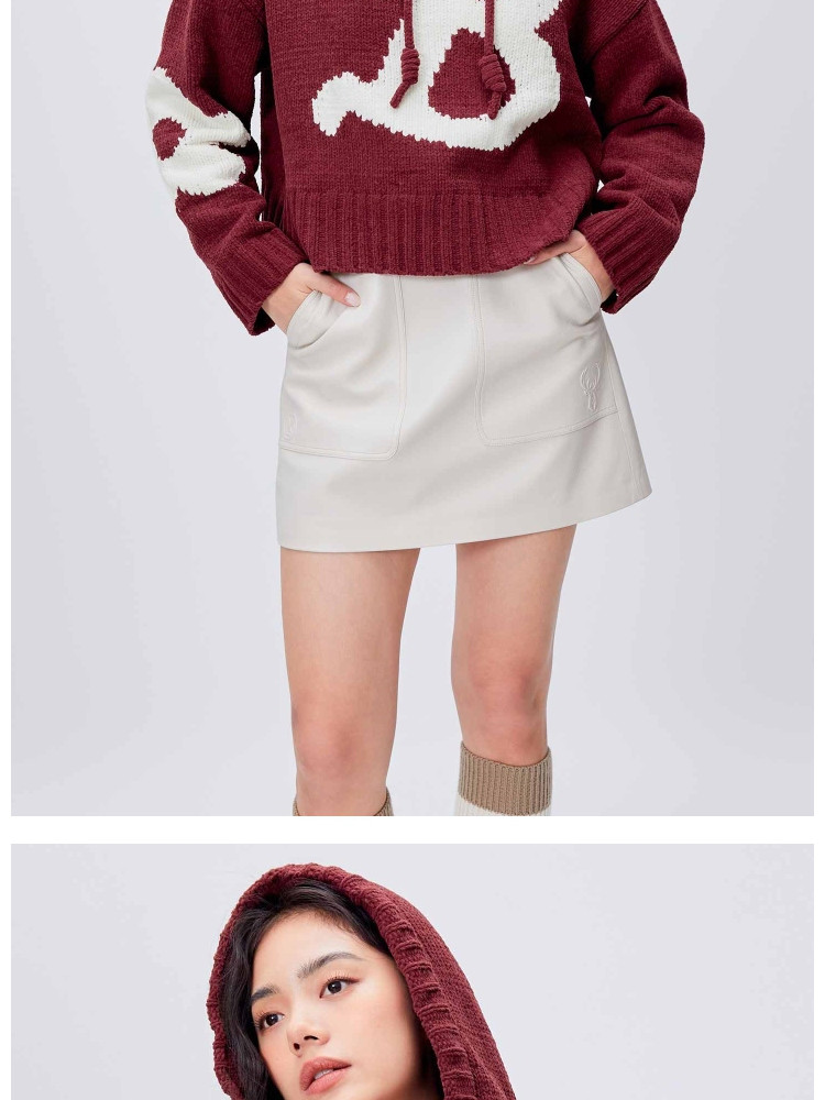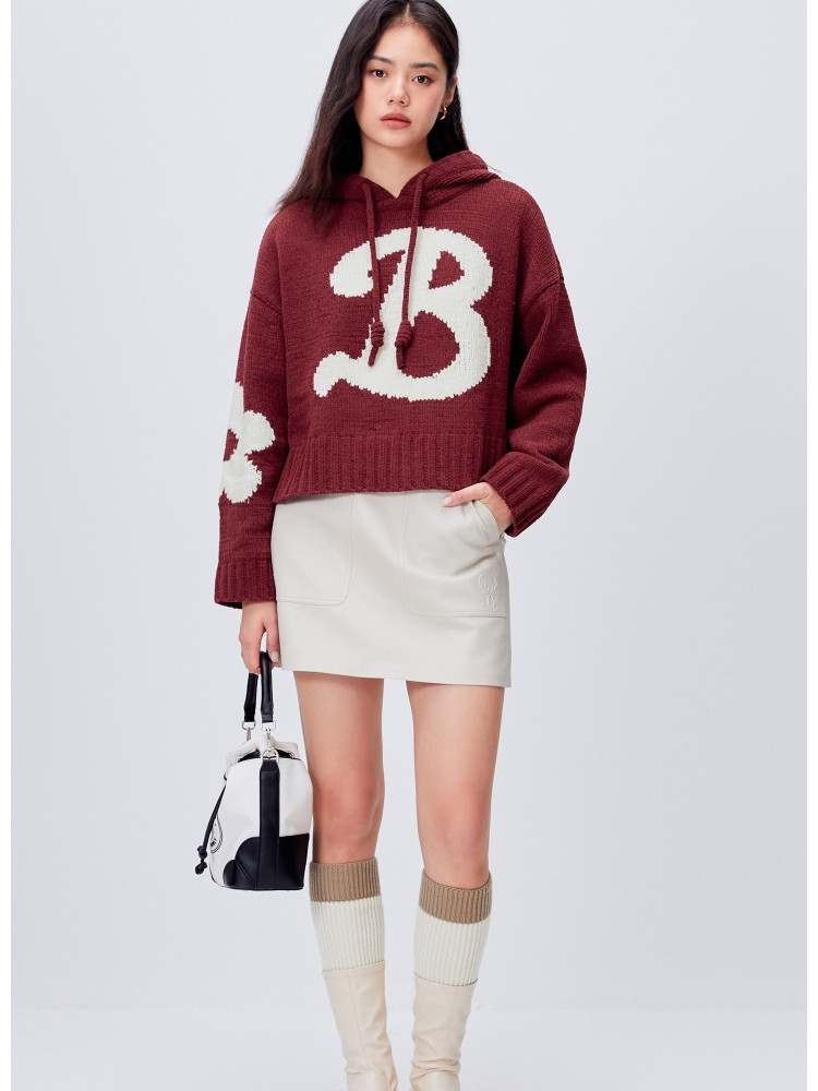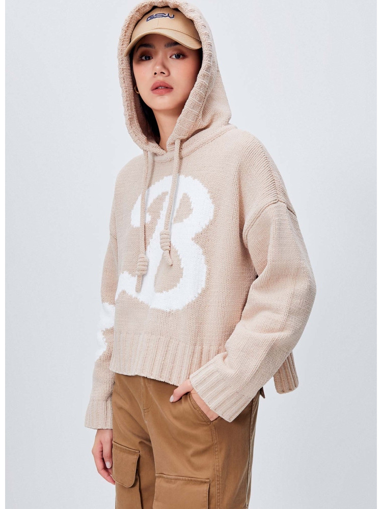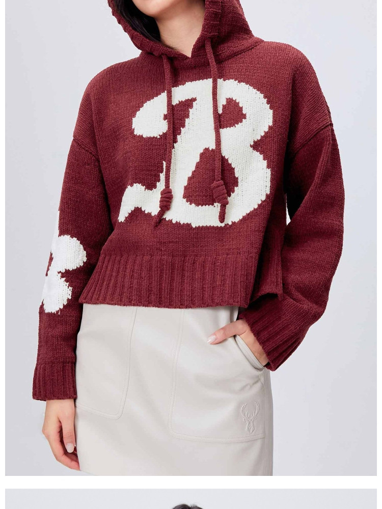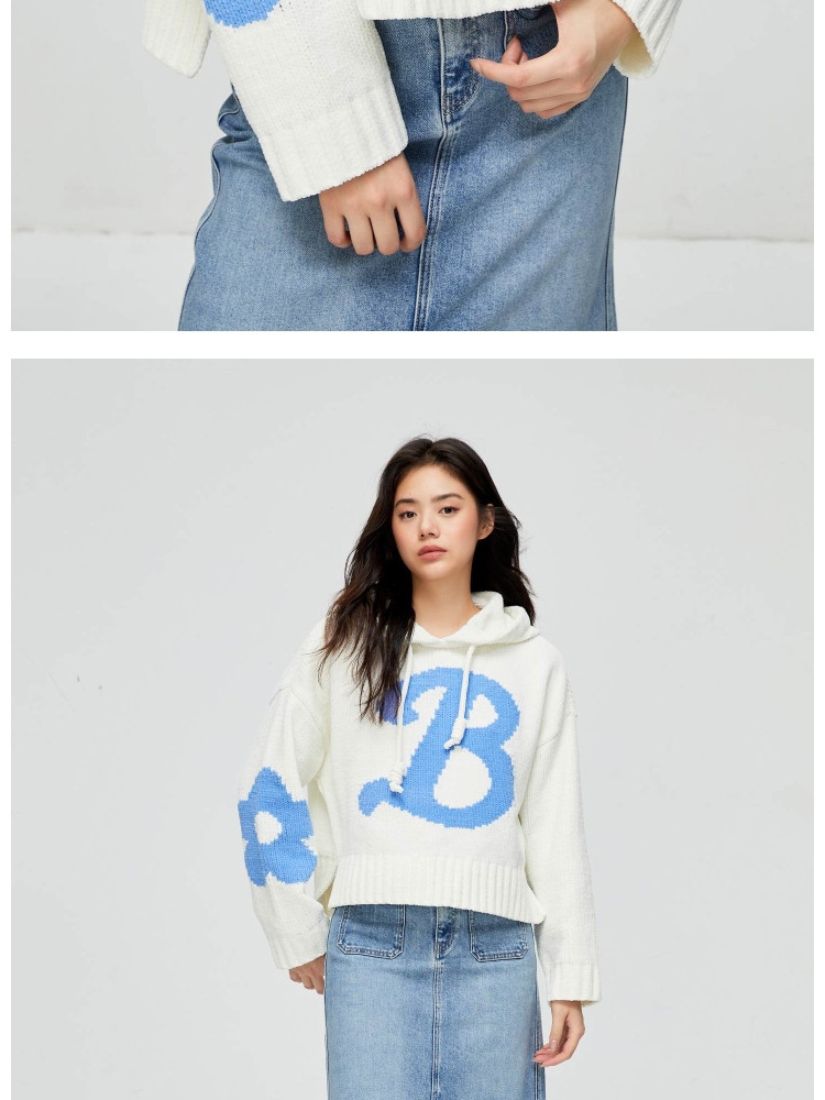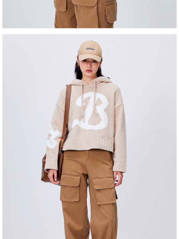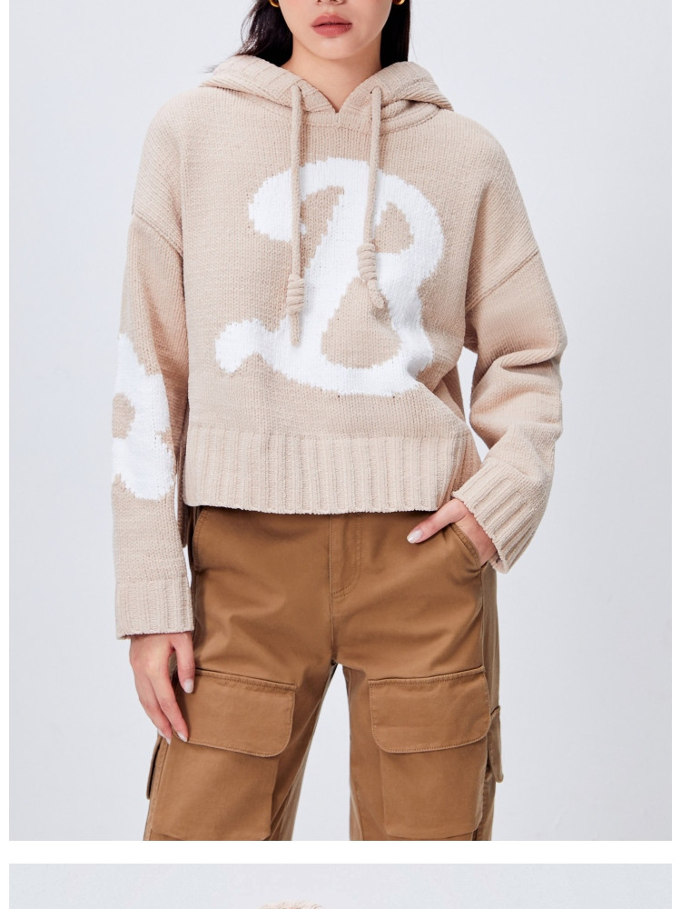 【连帽绑带设计】春季学院风减龄字母连帽宽松抽绳针织衫女 259802