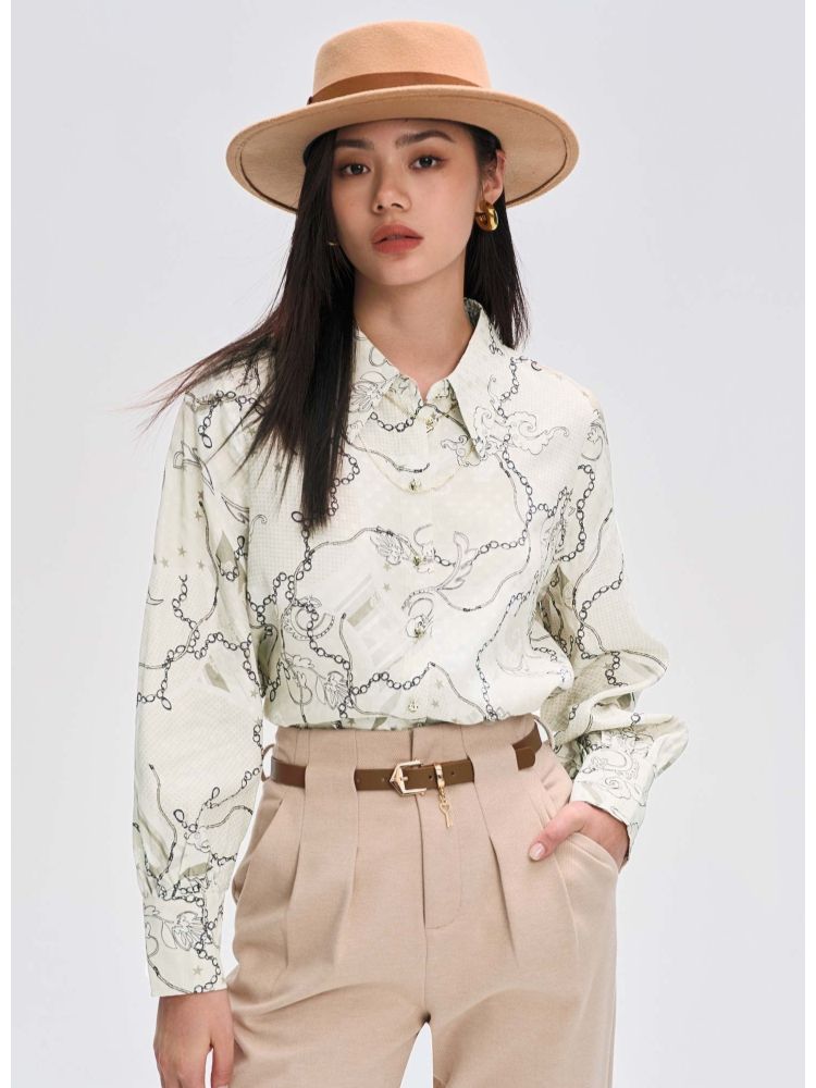 【时尚百搭】夏季宽松通勤翻领长袖衬衫女 309146