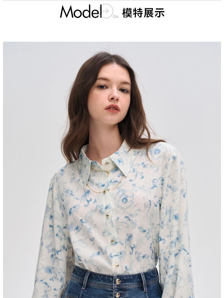商品名称:【时尚百搭】夏季宽松通勤翻领长袖衬衫女 309146