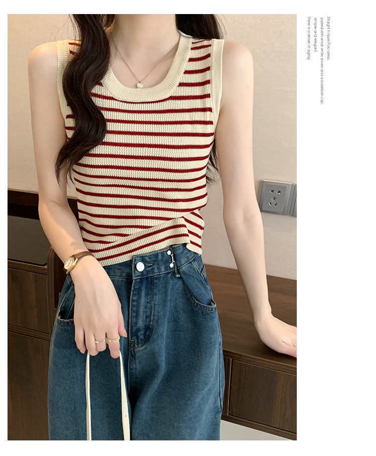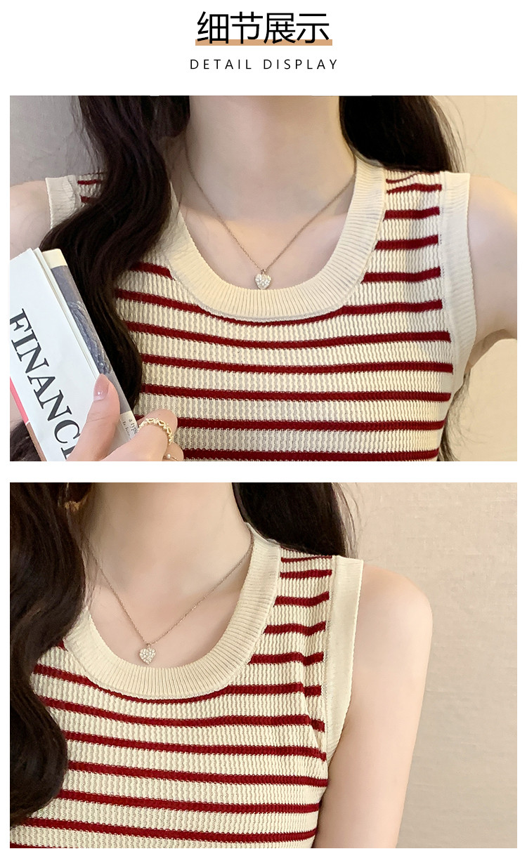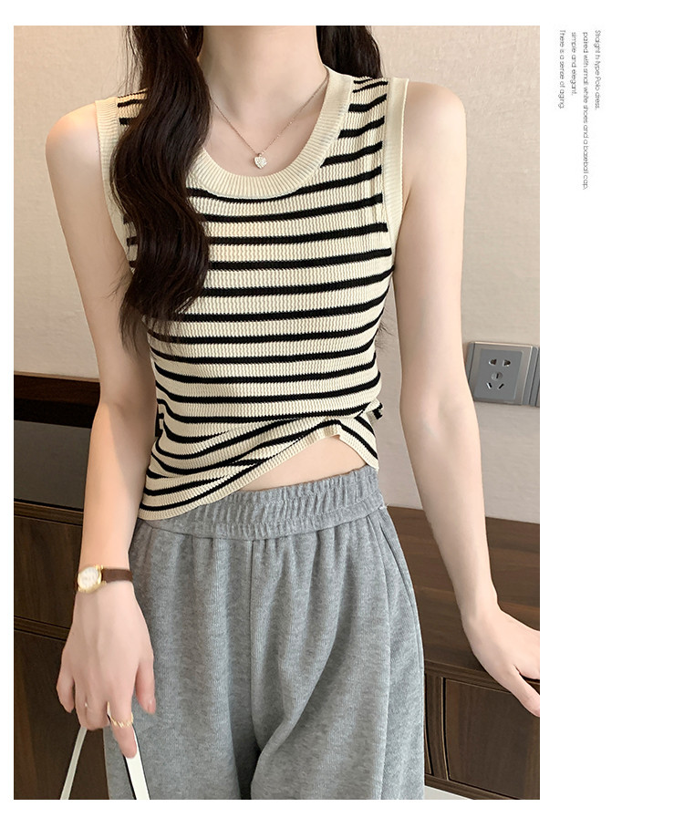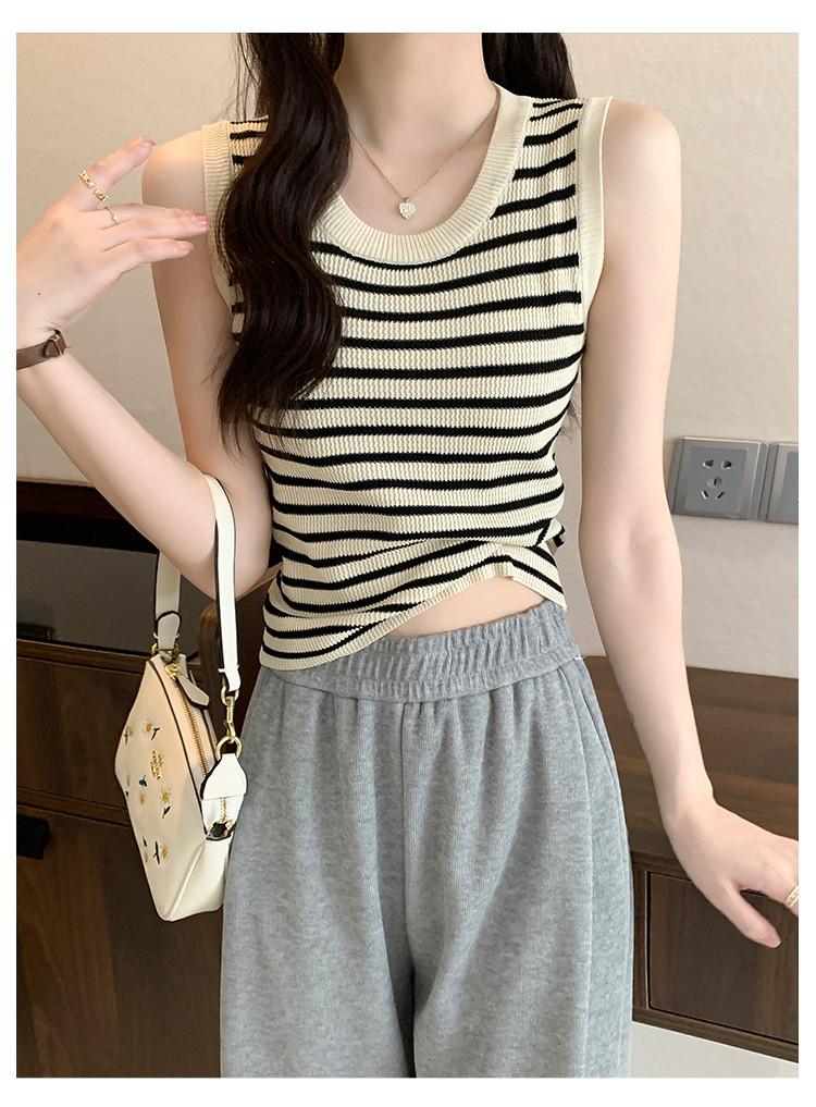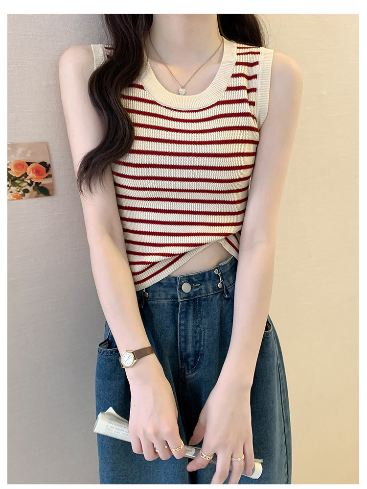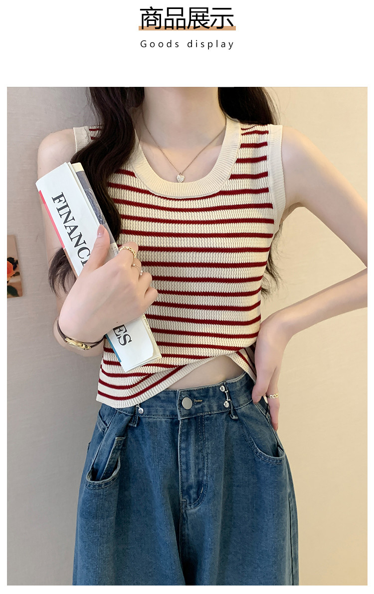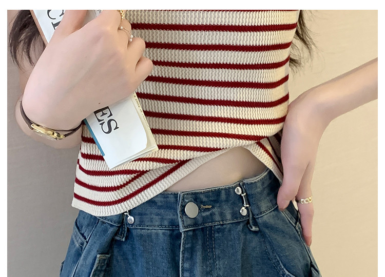 商品名称:条纹背心女短款打底衫薄款针织上衣外穿吊带背心女 829059