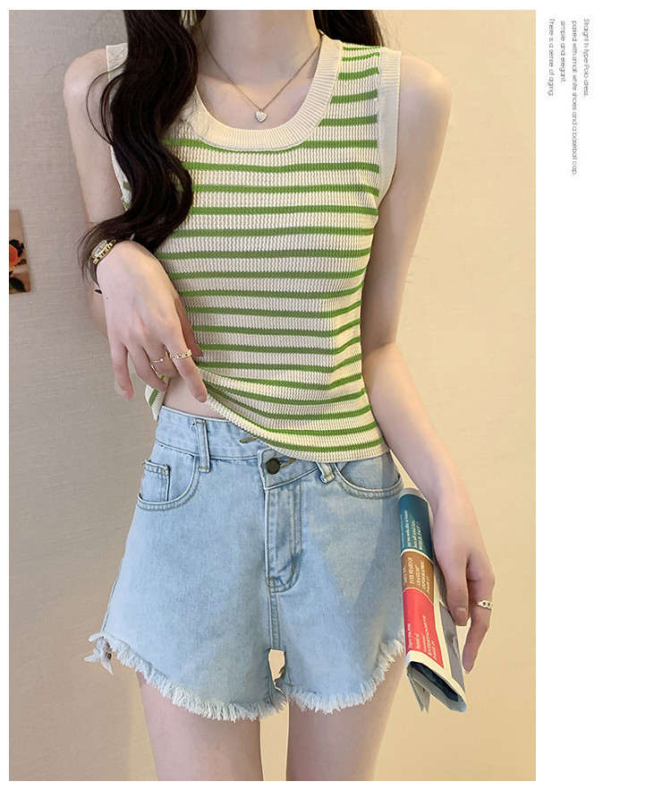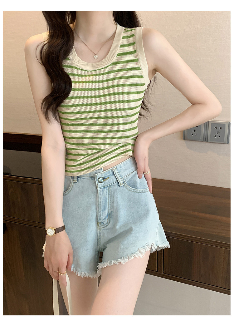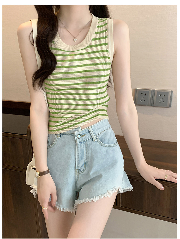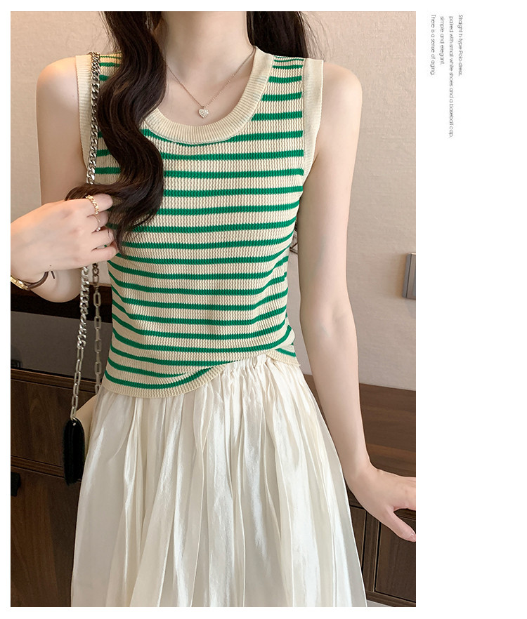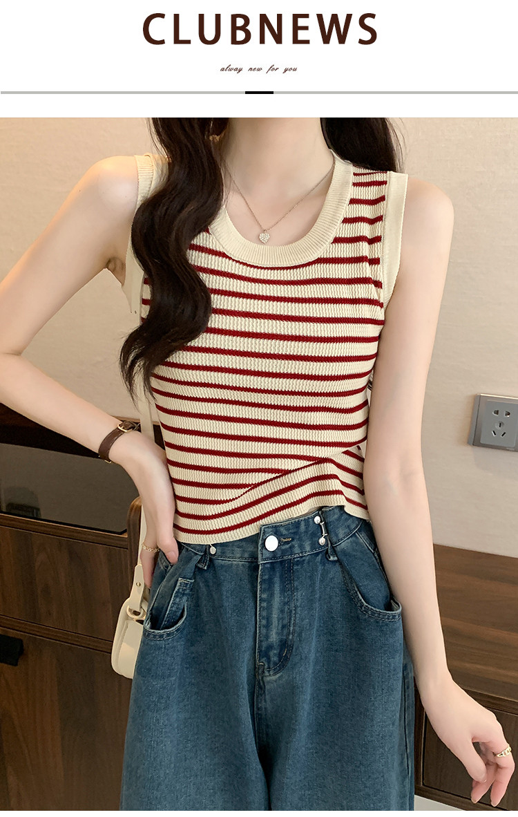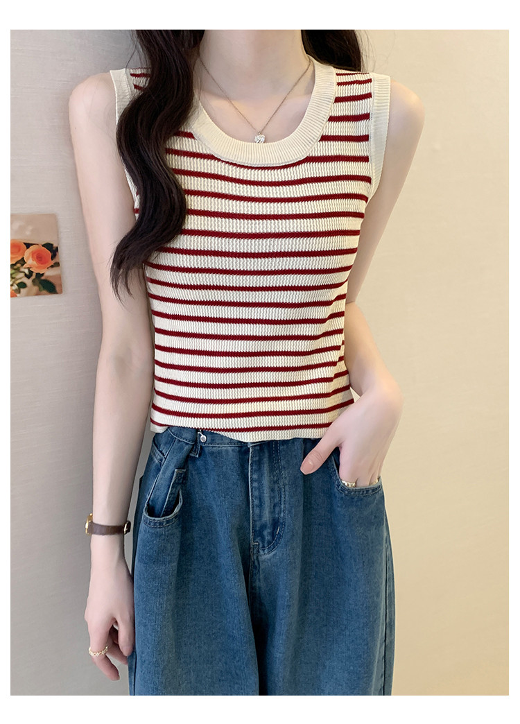 商品名称:条纹背心女短款打底衫薄款针织上衣外穿吊带背心女 829059